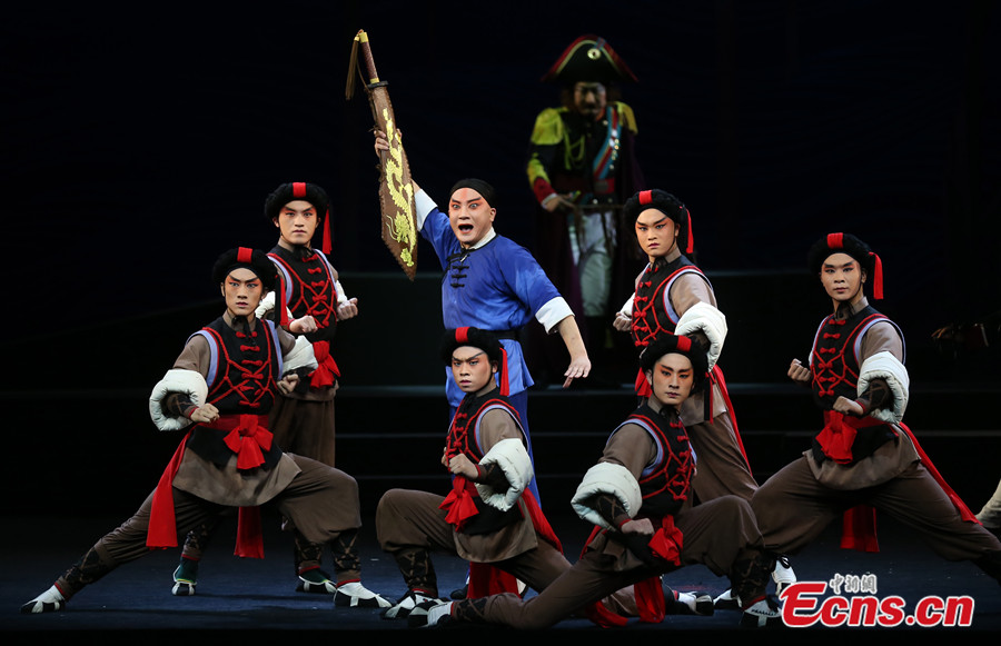 An epic Peking Opera featuring Macao's history is staged in Nanjing city of east China's Jiangsu province on July 29, 2014. The opera Jinghaihun, or "The Soul of Macao", focuses on a famous incident in the city's history - the only assassination of a Portuguese governor during its 450 years as a colony. The opera is written by Macao's writer Mu Xinxin and performed by famous Peking Opera artist Tian Lei. [Photo: China News Service / Yang Bo]