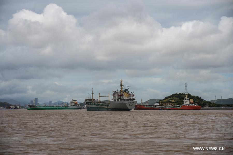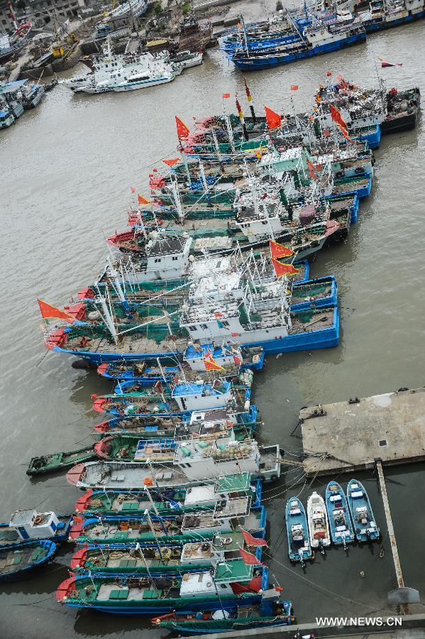 Fishing boats are berthed in a harbor in Zhoushan, east China's Zhejiang Province, July 31, 2014. Typhoon Nakri is moving from waters southwest of Taiwan Island into the East China Sea at a speed of 20 to 25 kilometers per hour (kph), said China's National Marine Environmental Forecasting Center on Thursday. Emergency response programs have been launched by local governmental department in Zhejiang. (Xinhua/Xu Yu)