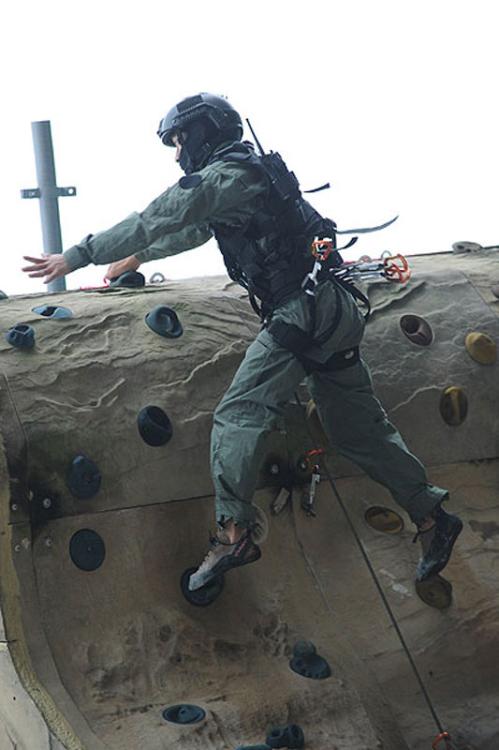 Members of Hong Kong’s elite armed-response unit, the Flying Tigers, join an exercise. This year marks the 40th anniversary of founding of the assault team. The Hong Kong SAR Government reveals an article on its official website on August 3, 2014 to mark the anniversary.