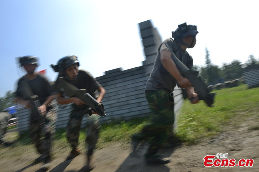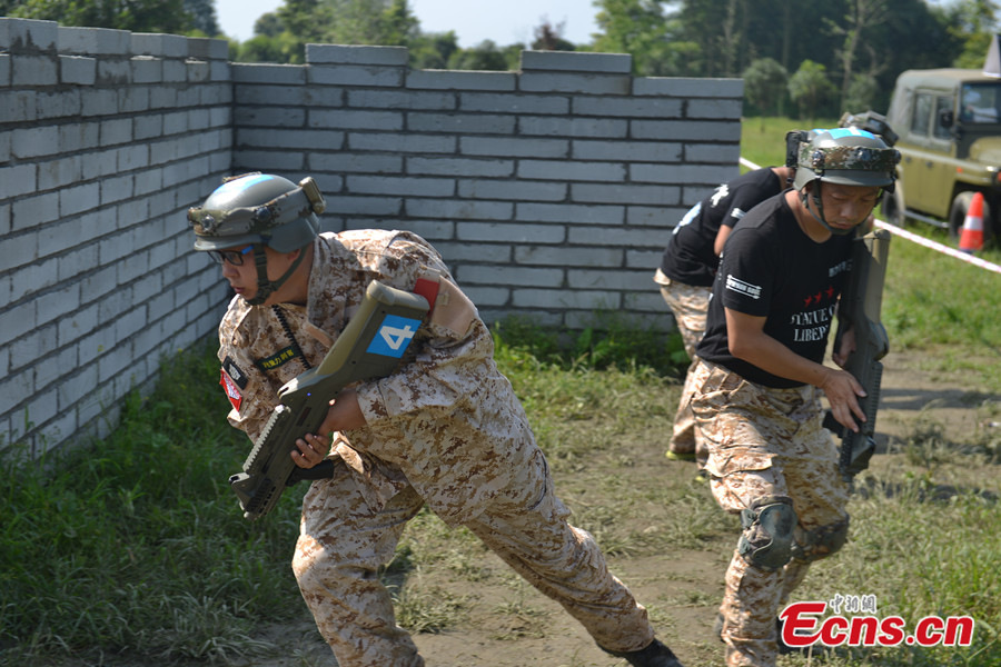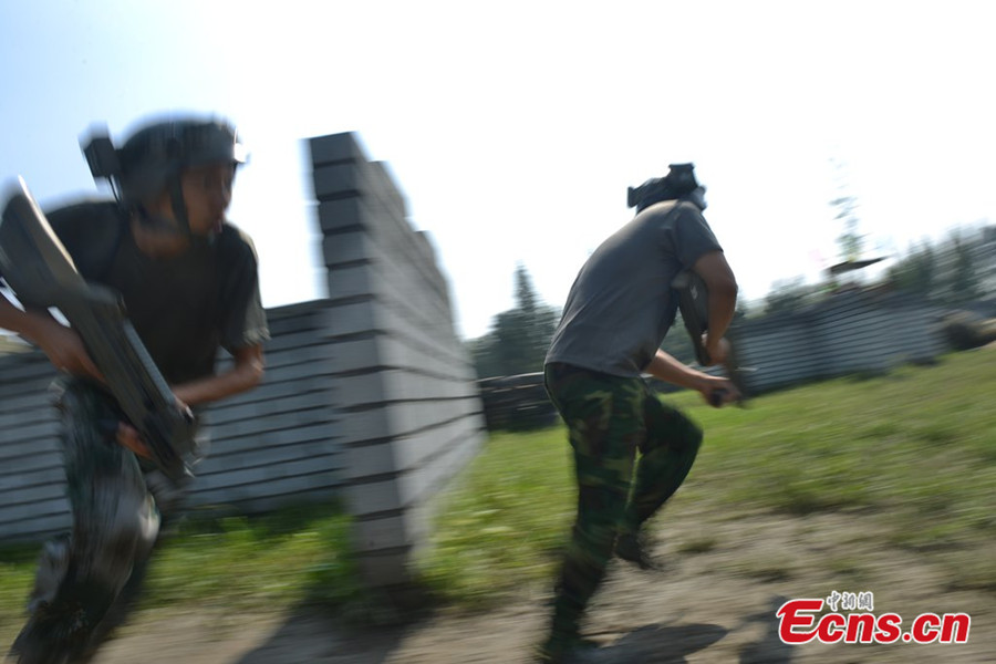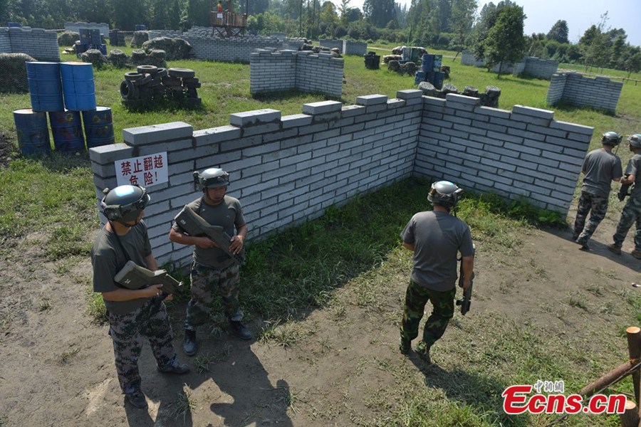 The 2nd Chengdu Live CS Competition kicks off at Anlong town in Dujiangyan city, under Chengdu city of southwest China's Sichuan province on August 2, 2014. The three-day competition attracts 36 teams from cities and provinces, including Chengdu, Chongqing, Beijing, Yunnan, Guizhou and Luzhou. [Photo/Zhang Lang]
