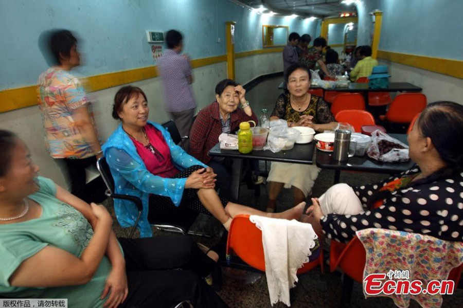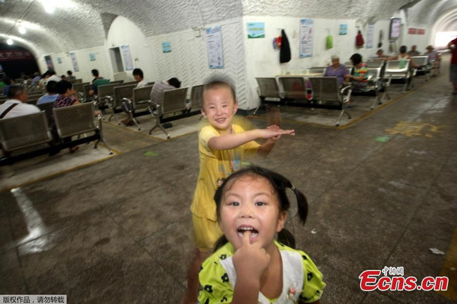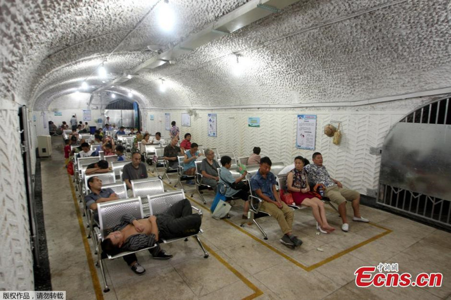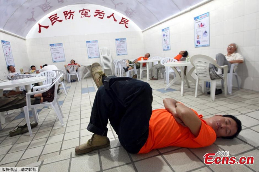 Residents in Hangzhou, Zhejiang province take refuge from the heat in an underground air-raid shelter on August 5, 2014. Hangzhou began to open air-raid shelters to the public in the summer of 2003. Those shelters have televisions, Wi-Fi service and free drinking water. [Photo/ IC]