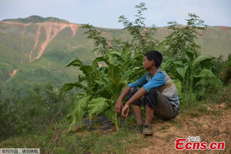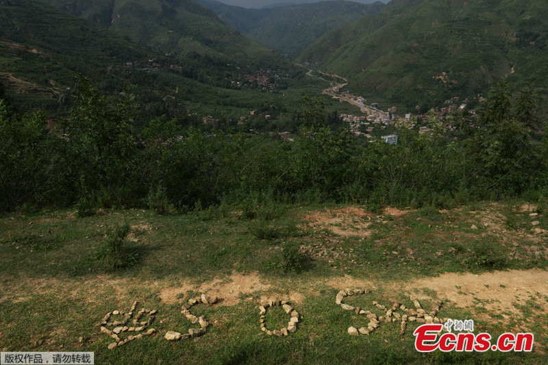 Huge characters of “SOS (international Morse code distress signal)” and Chinese word “Jiu Ming (means ‘help’)” formed with stones are seen on an open space on a mountain of Yingpan village, Longtoushan town of Ludian county in Yunan province on August 6, 2014. Formed by a 14-year-old boy named Feng Yuantao, the signal reflected the urgent needs for help of local villagers who have limited access to disaster relief. A 6.5-magnitude earthquake jolted Ludian County of Zhaotong City in southwest China's Yunnan province at 4:30 pm on August 3, 2014. [Photo/ IC]