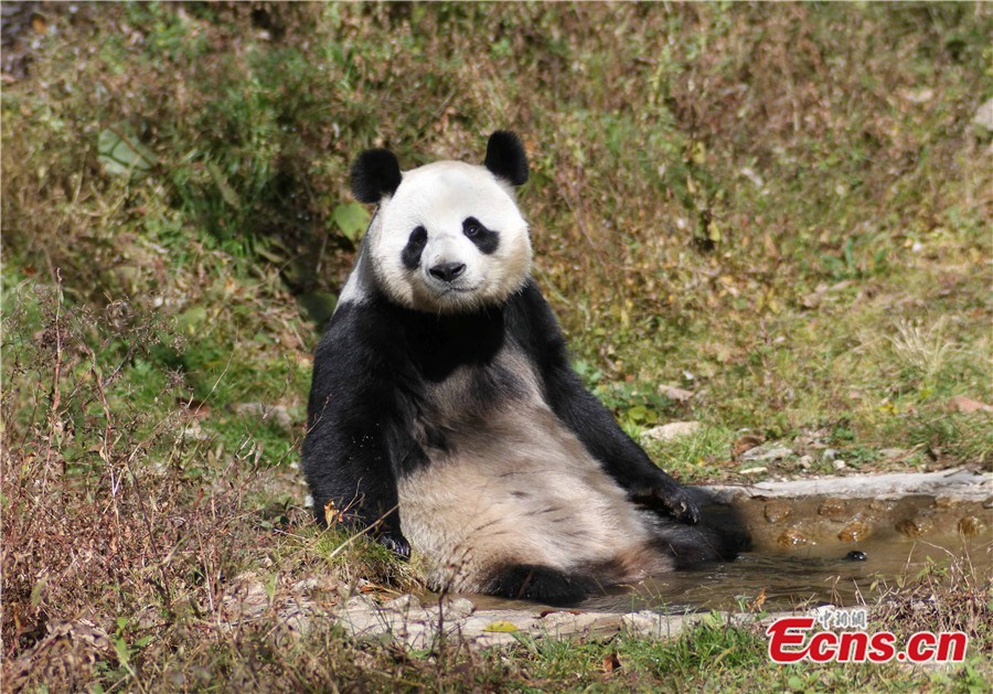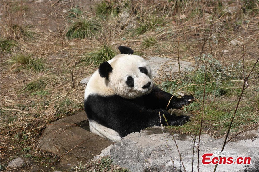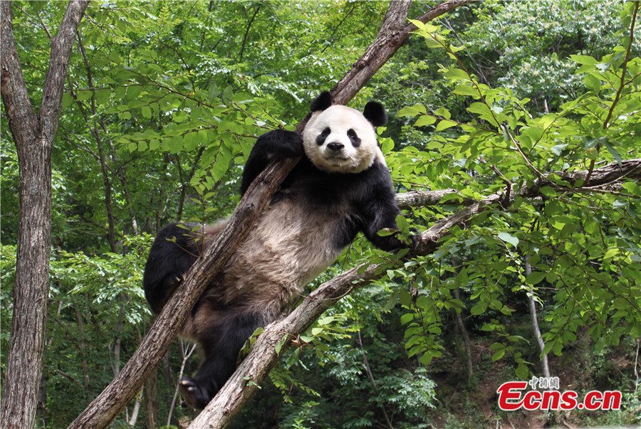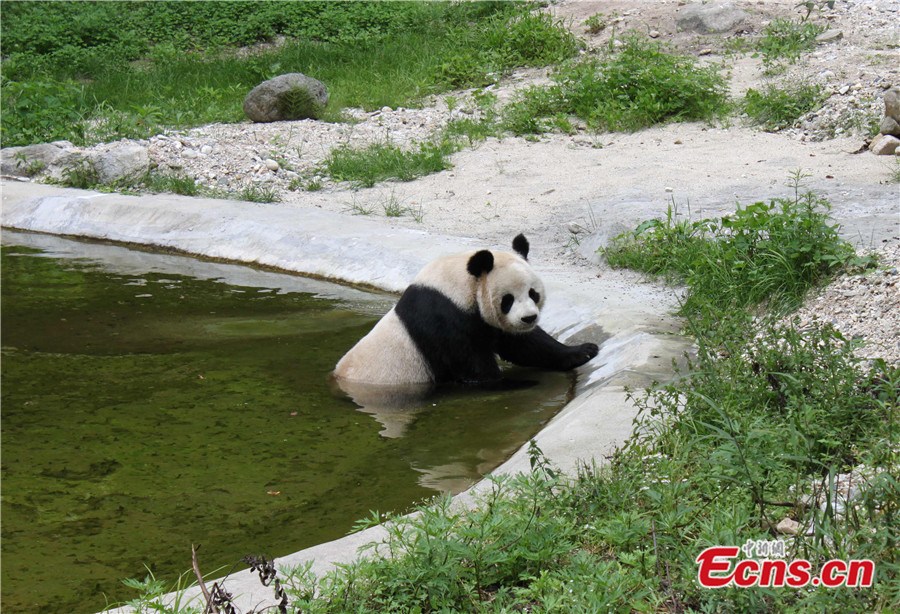By August 5, Shaanxi province has witnessed 33 days with high temperature this year, which makes a new record in 54 years. Photo shows a giant panda eats watermelon to fight summer heat at the Qinling Giant Panda Field Training Base in Foping county, northwest China's Shaanxi Province. Qinling Giant Panda Field Training Base, built in 1978, has 110-130 pandas now. [Photo/Pu Zhiyong]