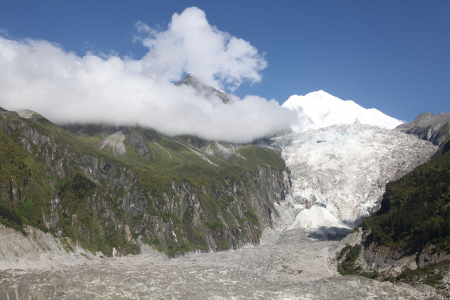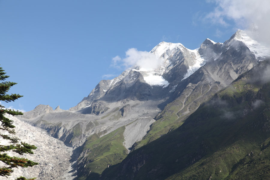 A photo taken on July 30, 2014 shows the Hailuogou glacier in the Ganzi autonomous prefecture of Southwest China's Sichuan province. The glacier at Hailuogou is well known for being the lowest glacier among those of the same latitude on Earth. [Photo by Zhu Jianhua/For chinadaily.com.cn]