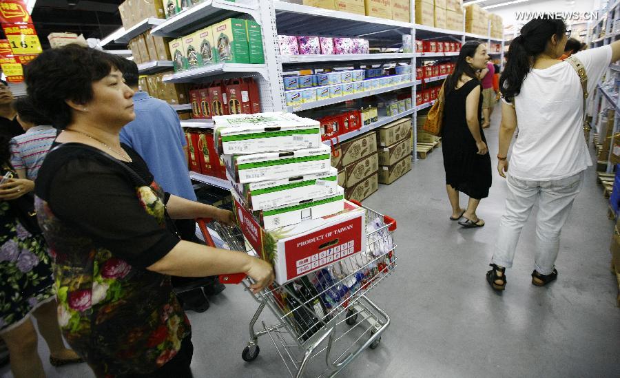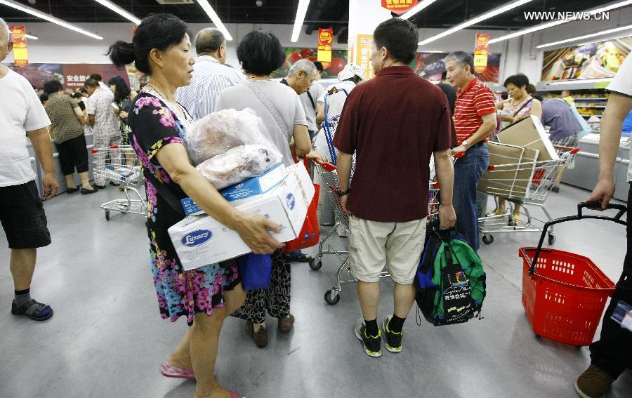 Citizens buy frozen food in the Waigaoqiao Direct Imported Goods market in the Shanghai Free Trade Zone (FTZ) in Shanghai, east China, Aug. 13, 2014. The Shanghai FTZ was launched in September 2013. It allows foreign businesses to invest in a series of sectors. (Xinhua/Fang Zhe)