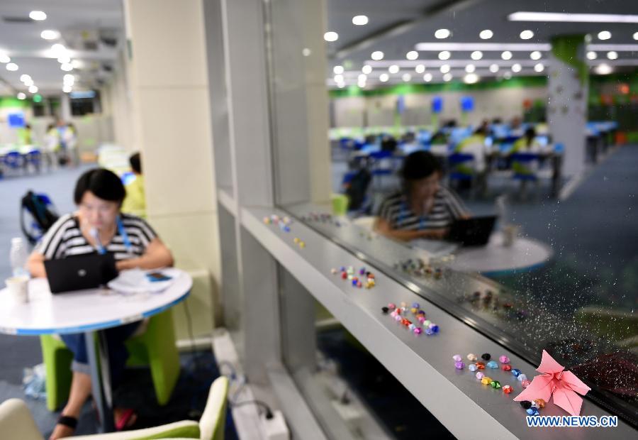 Volunteers' crafts at Media Centre of Nanjing 2014 YOG (1/3)