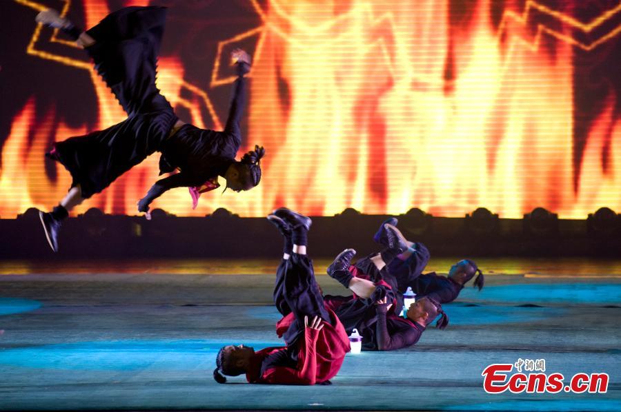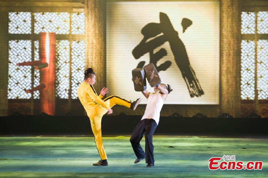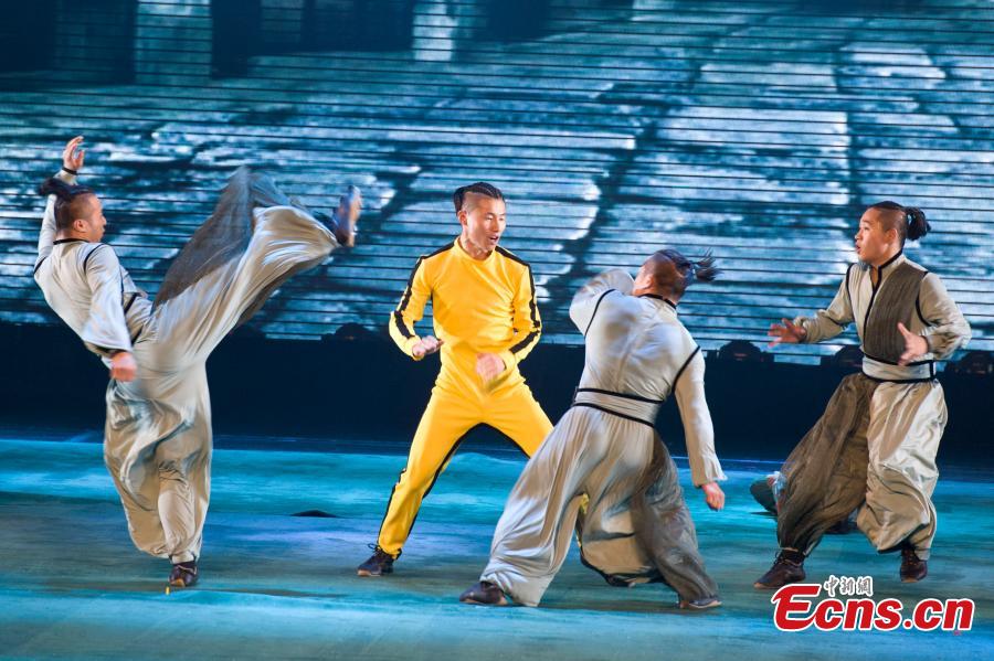 Kung Fu show 11 Martial Artists is staged at Chang'an Grand Theater in Beijing on Aug. 13, 2014. The show is performed by a 15-member martial arts troupe, founded in 2006. Chinese kung fu star Jackie Chan contributed to the founding of the troupe and has played a key role in its development. [Photo: China News Service / Cui Nan]
