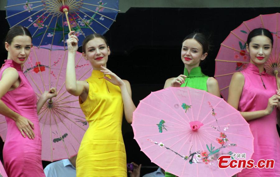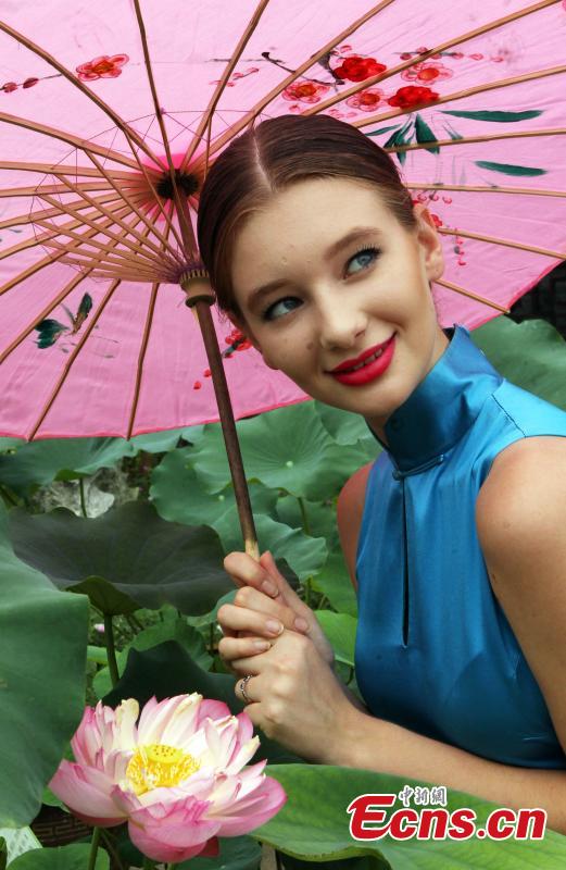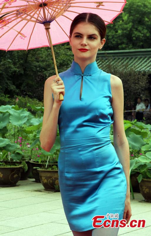 Foreign models stage qipao show at Slender West Lake, E China (1/6)