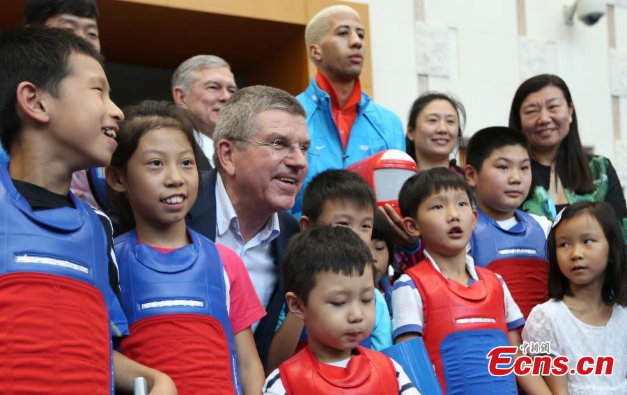 IOC President Thomas Bach has 'sword fight' with Nanjing kids (1/4)
