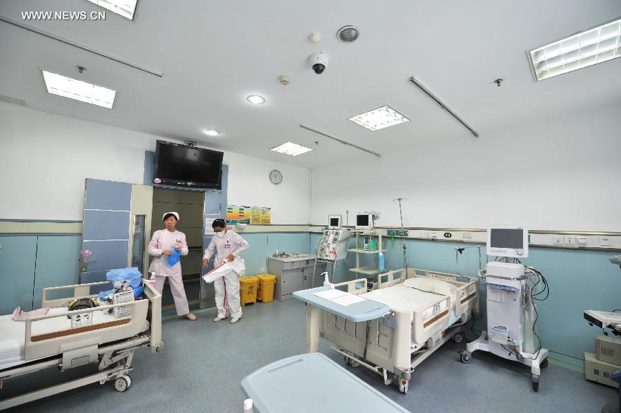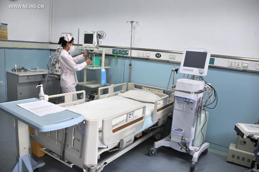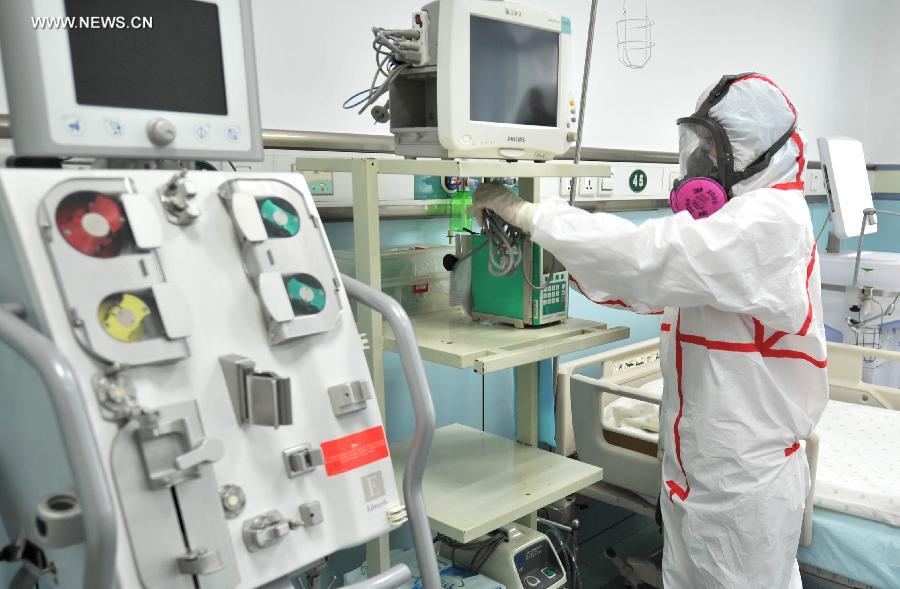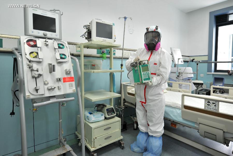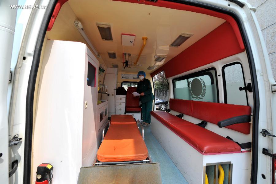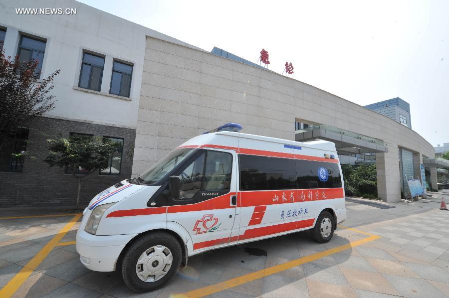 A negative-pressure isolation ambulance which can be used to transfer Ebola virus disease (EVD) patients is parked at Shandong Provincial Thoracic Hospital of Jinan, capital of east China's Shandong Province, Aug. 20, 2014. Authorities in Shandong recently made Shandong Provincial Thoracic Hospital the province's designated medical service institution for potential EVD cases. The hospital has taken a series of precautionary measures against the disease, which has already caused over 1,000 deaths in West Africa this year. (Xinhua/Xu Suhui)