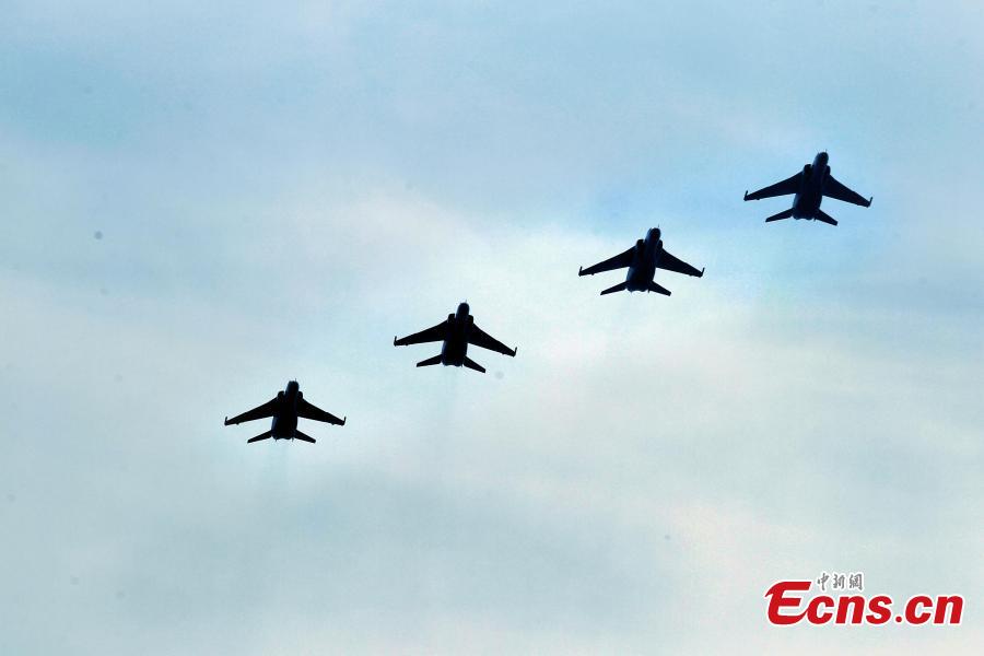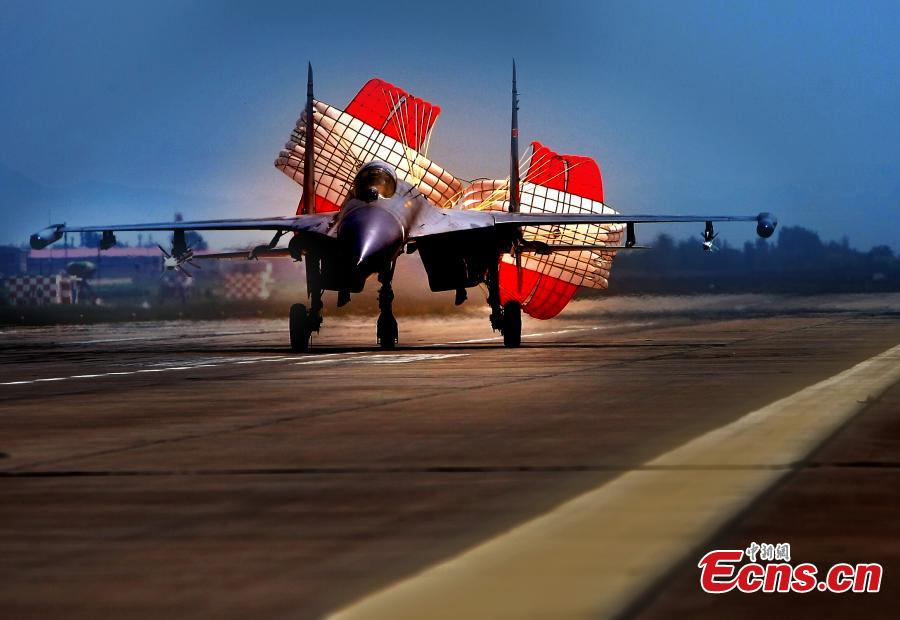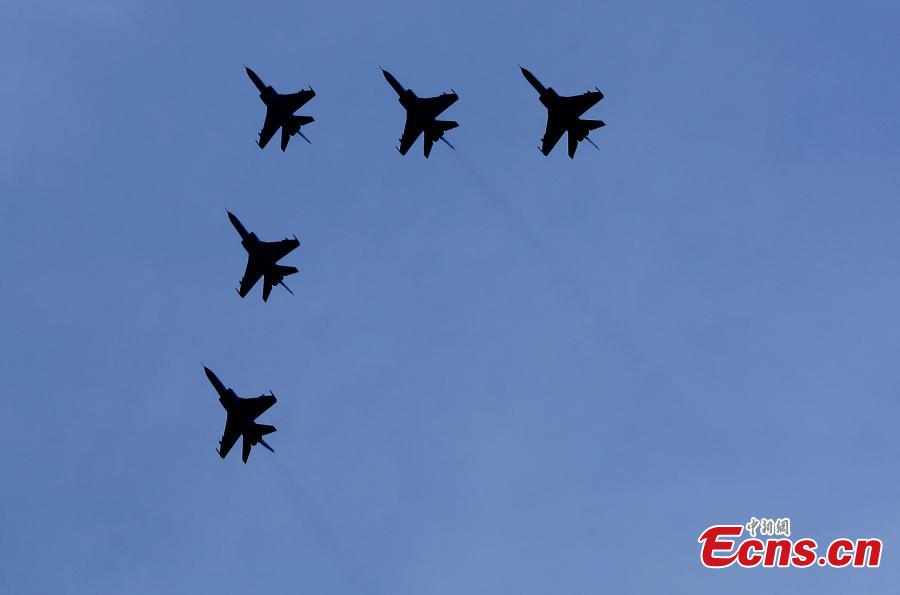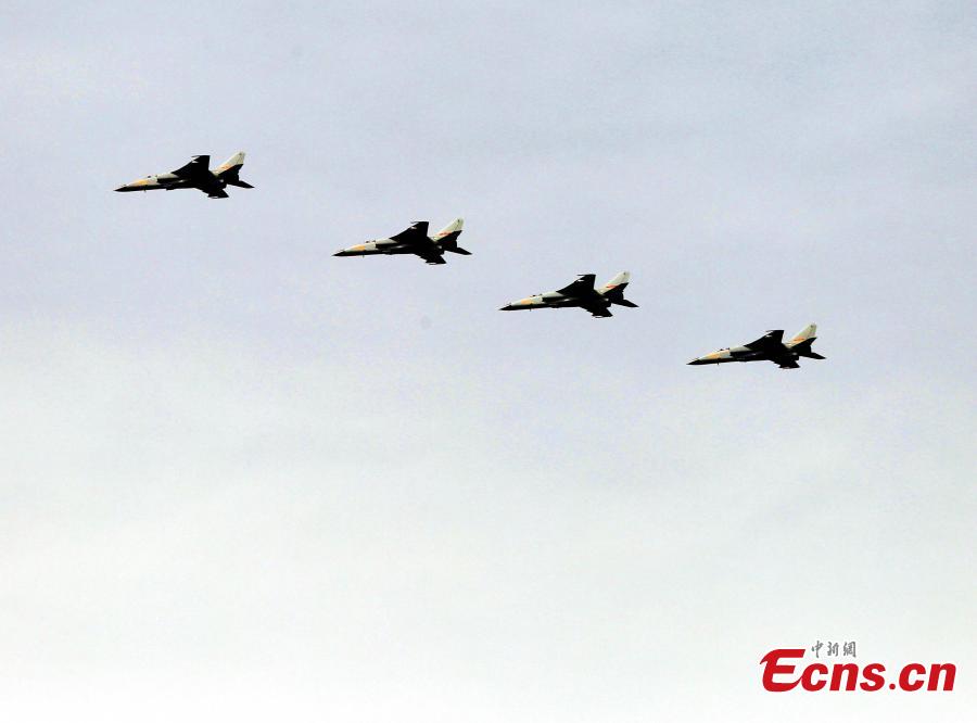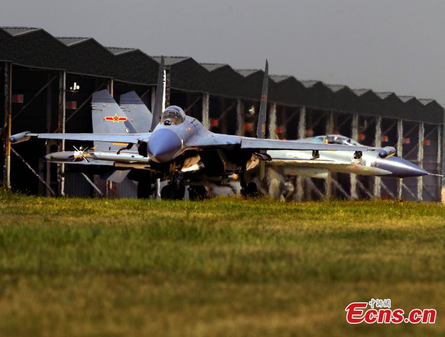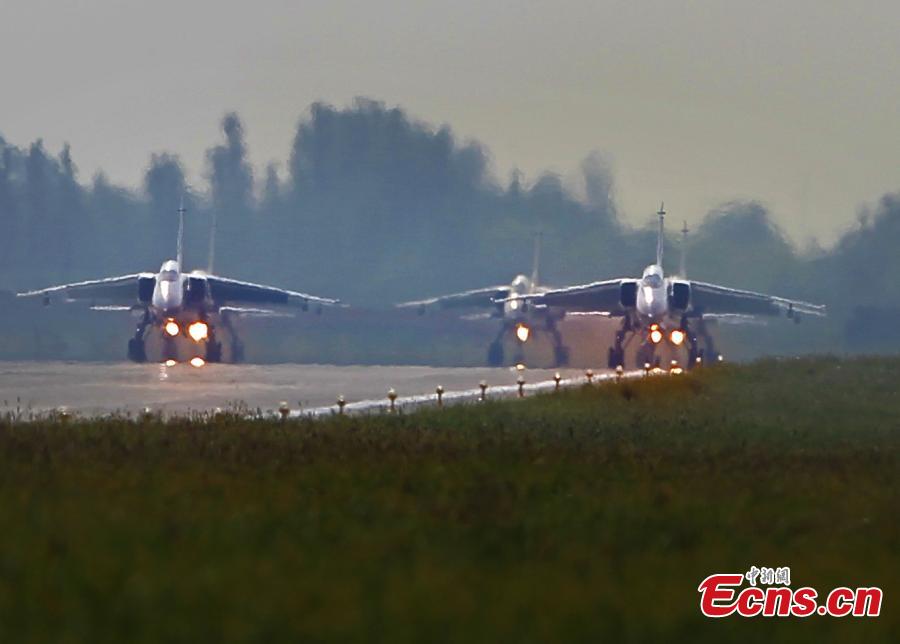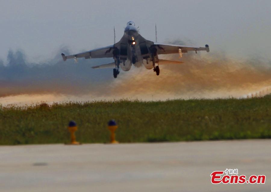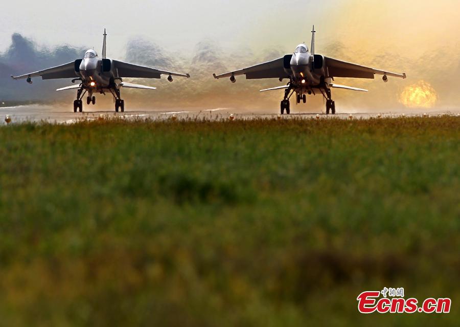 Chinese fighter aircrafts take off from an airport in north China in preparation for an exercise of the “Peace Mission-2014” drill on August 20, 2014. A total of 23 Chinese warplanes of seven types including KJ-200 early-warning airplanes, J-10 and J-11 fighters will join this drill. [Photo: China News Service/ Song Jihe]