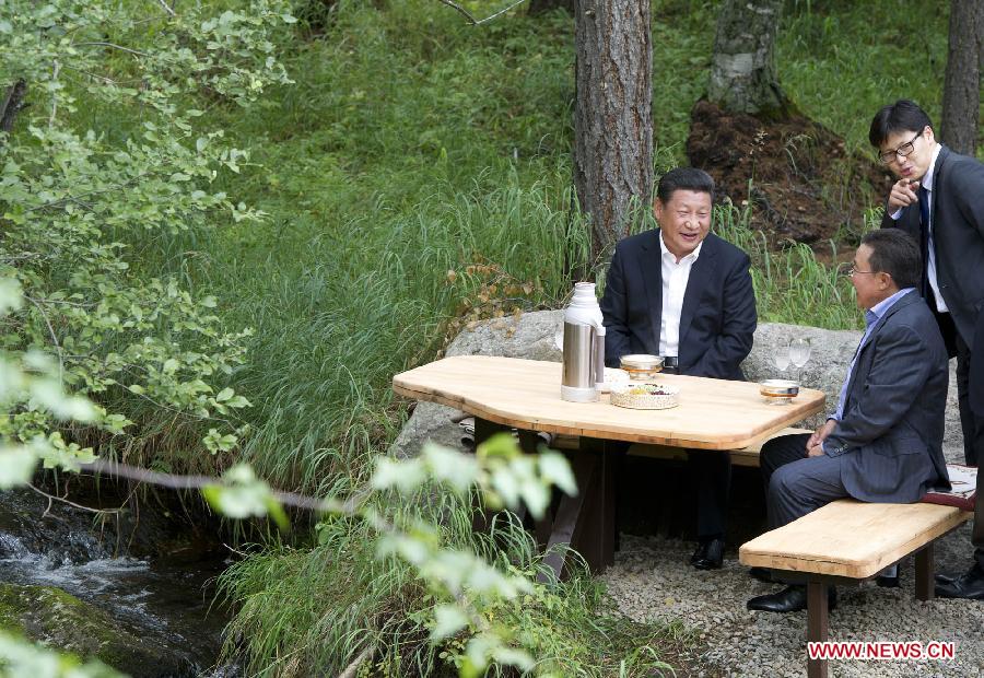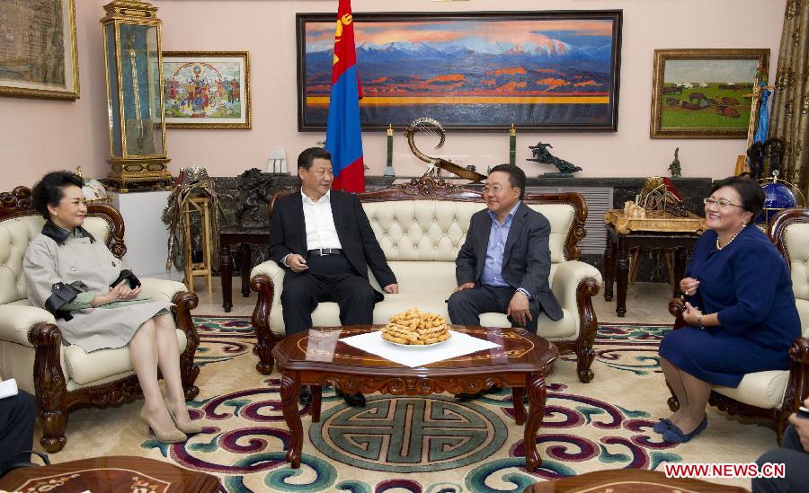 Chinese President Xi Jinping (2nd L) holds talks with his Mongolian counterpart Tsakhiagiin Elbegdorj (2nd R) in Ulan Bator, Mongolia, Aug. 22, 2014. (Xinhua/Huang Jingwen)