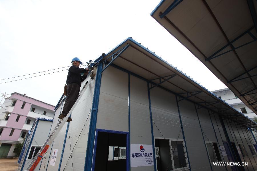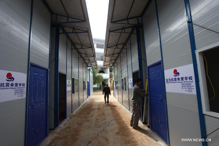 Mobile classrooms set up in quake-hit Yunnan(1/5)