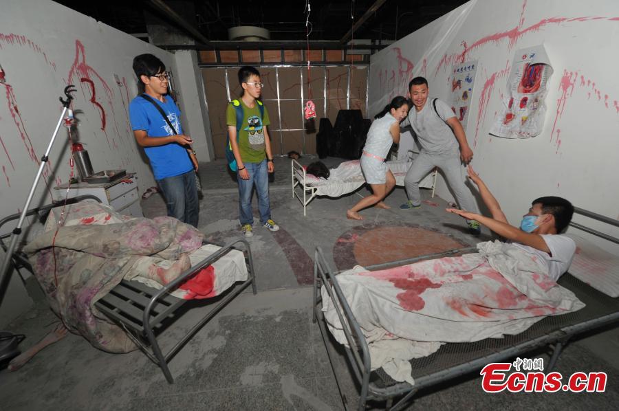 A game house themed "Horror Hospital" opens in Taiyuan city of north China's Shanxi province on Aug. 25, 2014. [Photo: China News Service / Wei Liang]