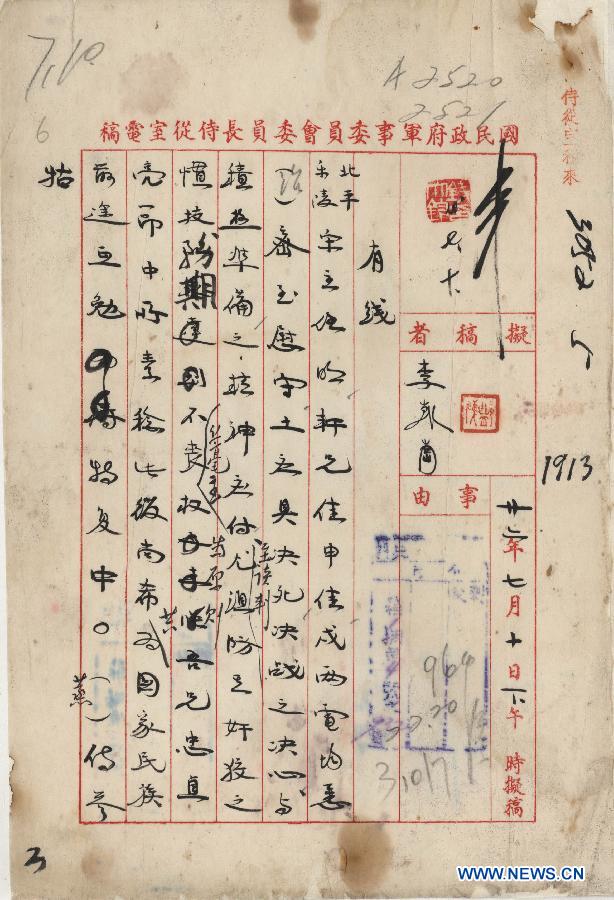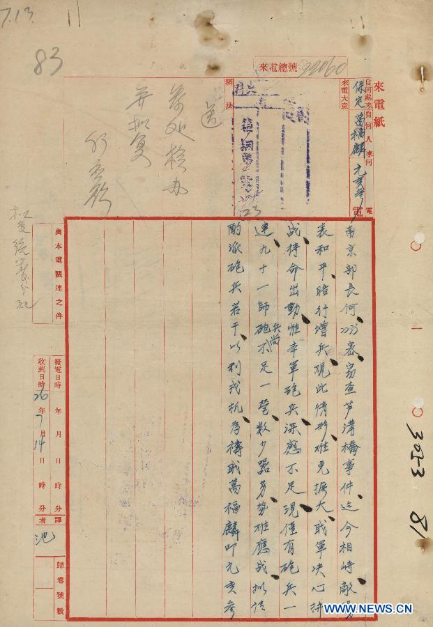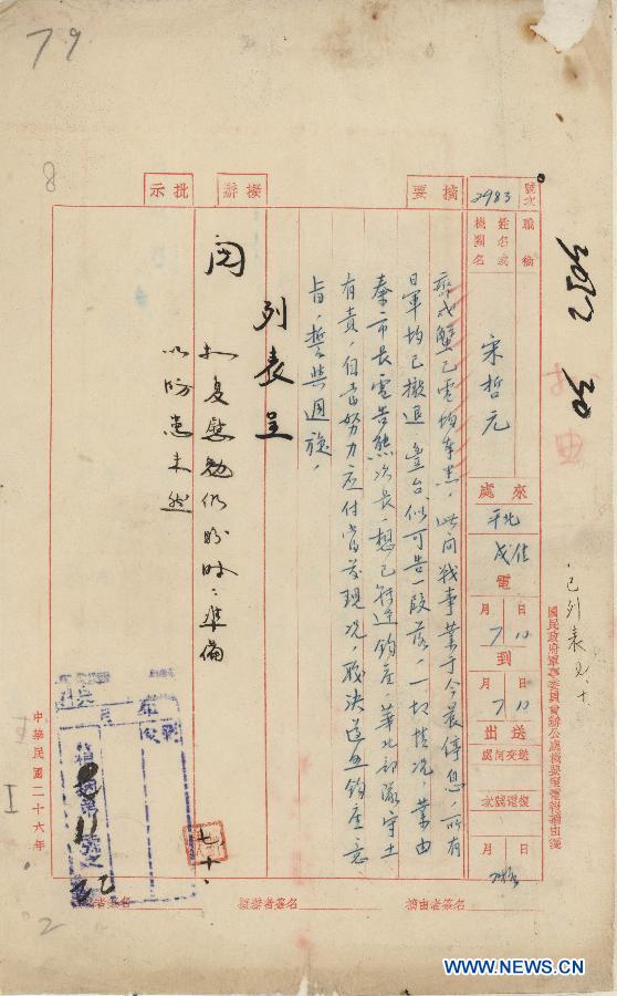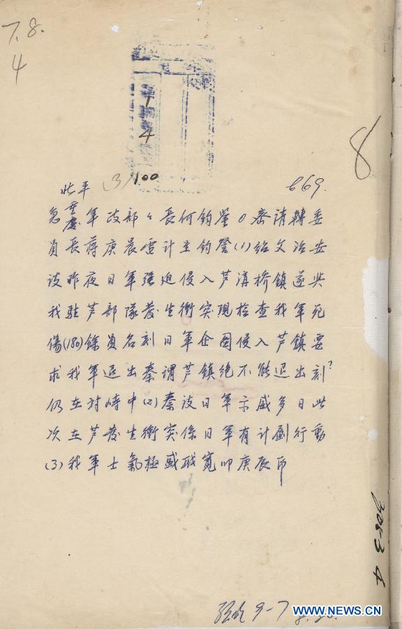 The State Archives Administration has published a video series on the War of Resistance Against Japanese Aggression to depict historical events and honor the Chinese fighting spirit. The first part of the series on the July 7 Incident in 1937 was released on Aug 25 by the administration's official website. (Xinhua)