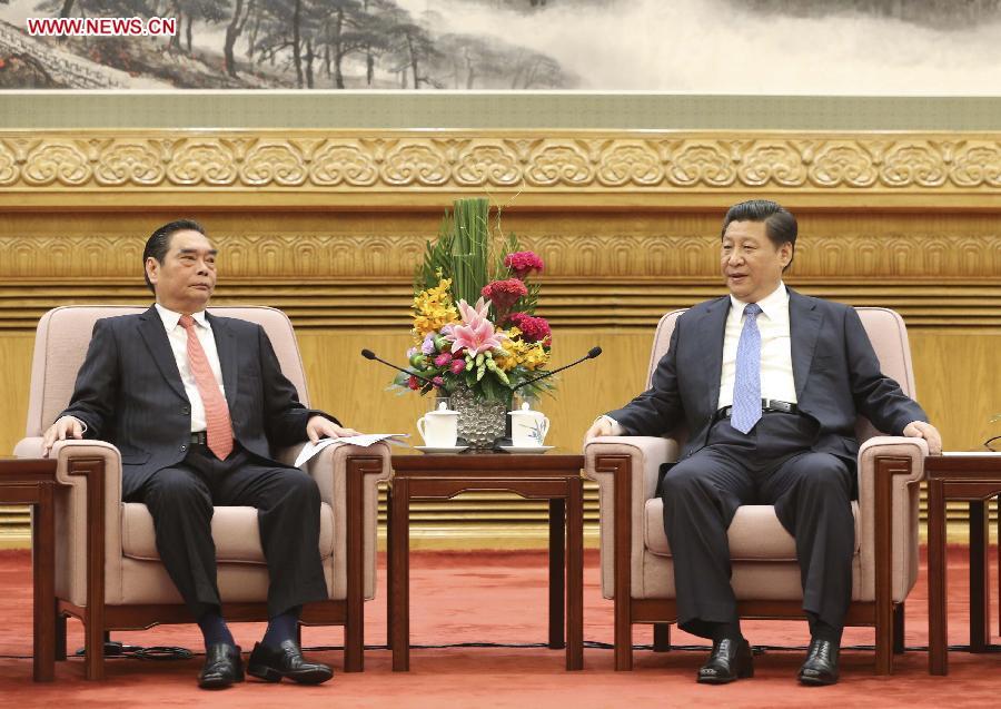 Chinese President Xi Jinping (R) meets with Le Hong Anh, special envoy of General Secretary of the Communist Party of Vietnam (CPV) Central Committee Nguyen Phu Trong and also a Politburo member and standing secretary of the Secretariat of the CPV Central Committee, in Beijing, capital of China, Aug. 27, 2014. (Xinhua/Ding Lin)