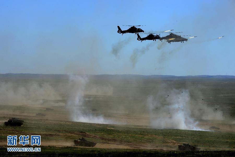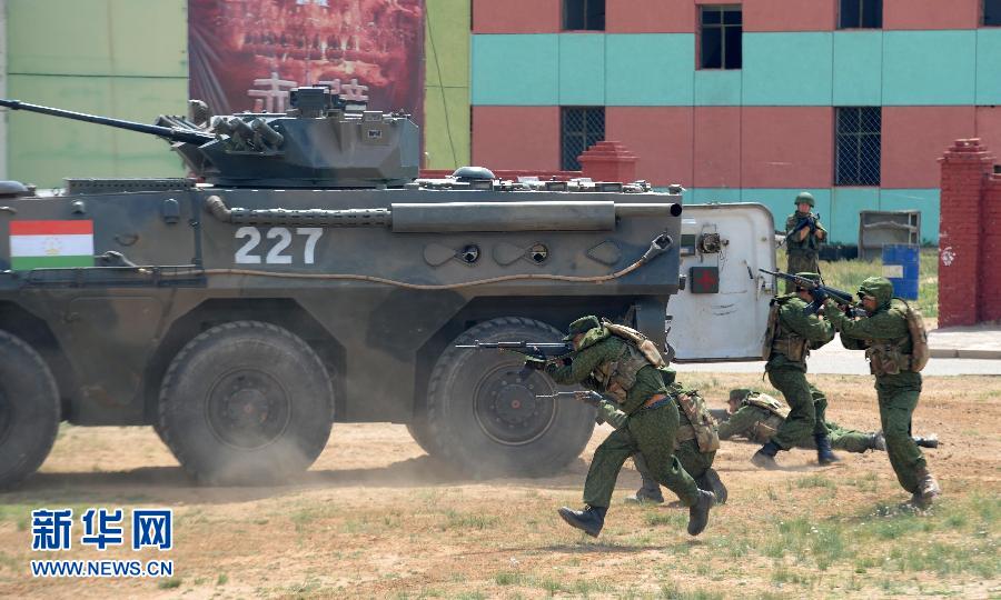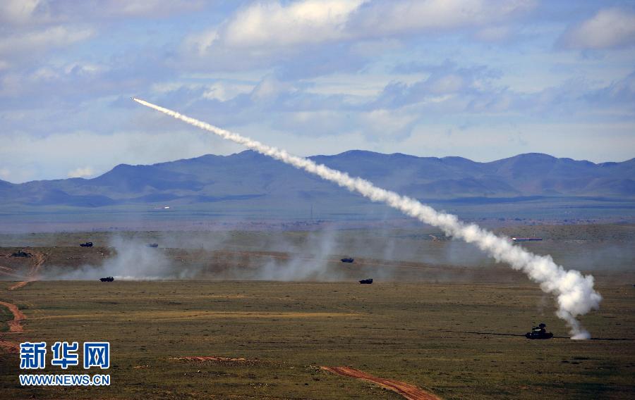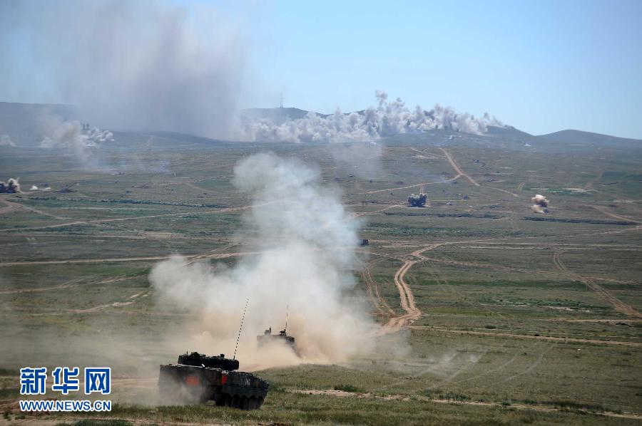 The "Peace Mission 2014" joint military drill took place in Zhurihe, Inner Mongolia, north China, from Aug. 24 to 29, 2014. The drill involved over 7,000 personnel from China, Russia, Kazakhstan, Kyrgyzstan and Tajikistan, member countries of the Shanghai Cooperation Organization (SCO), and is expected to hone multilateral decision-making, sharpen joint anti-terror efforts and boost intelligence sharing to ensure regional peace and stability. [Photo/Xinhua]