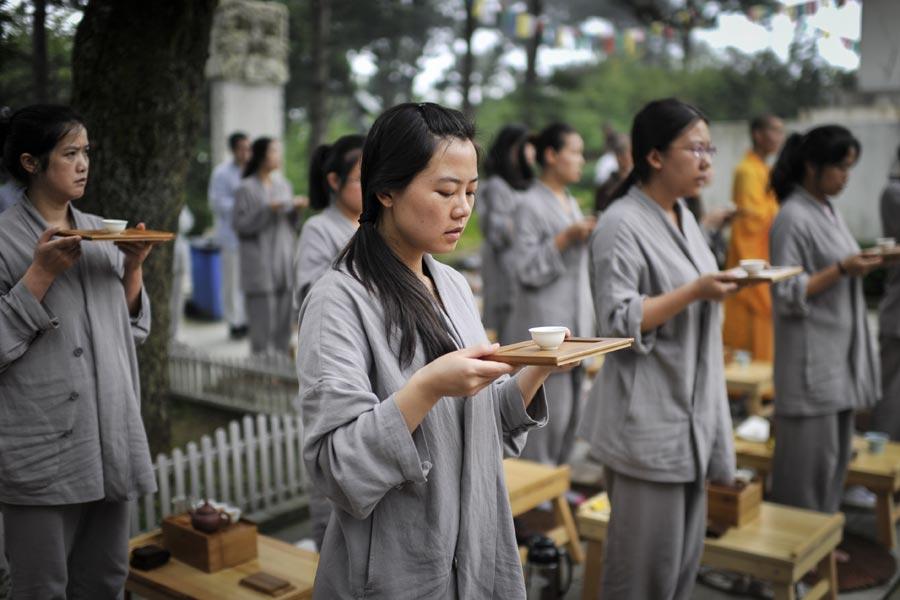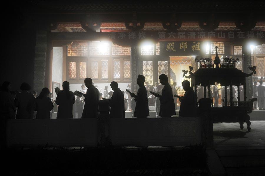 Campers find calm within from Zen Buddhism in Lushan Mountain in East China's Jiangxi province, where they lead a cloistered life for about a week. [Wang Qi / China Daily]