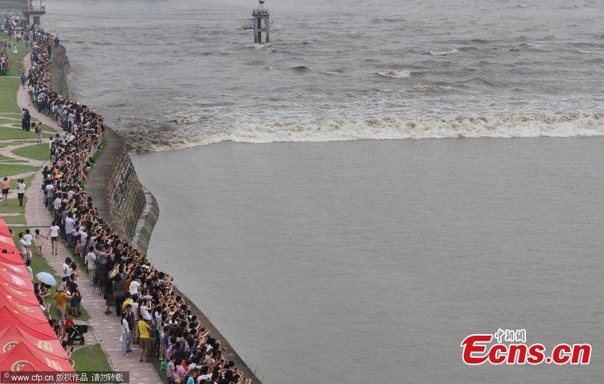 Tide watchers flock to Qiantang River for Mid-Autumn Festival(1/7)