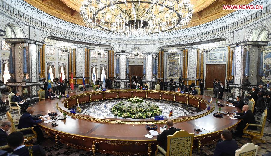 Chinese President Xi Jinping attends the 14th meeting of the Council of Heads of State of the Shanghai Cooperation Organization (SCO) in Dushanbe, capital of Tajikistan, Sept. 12, 2014. (Xinhua/Ju Peng)