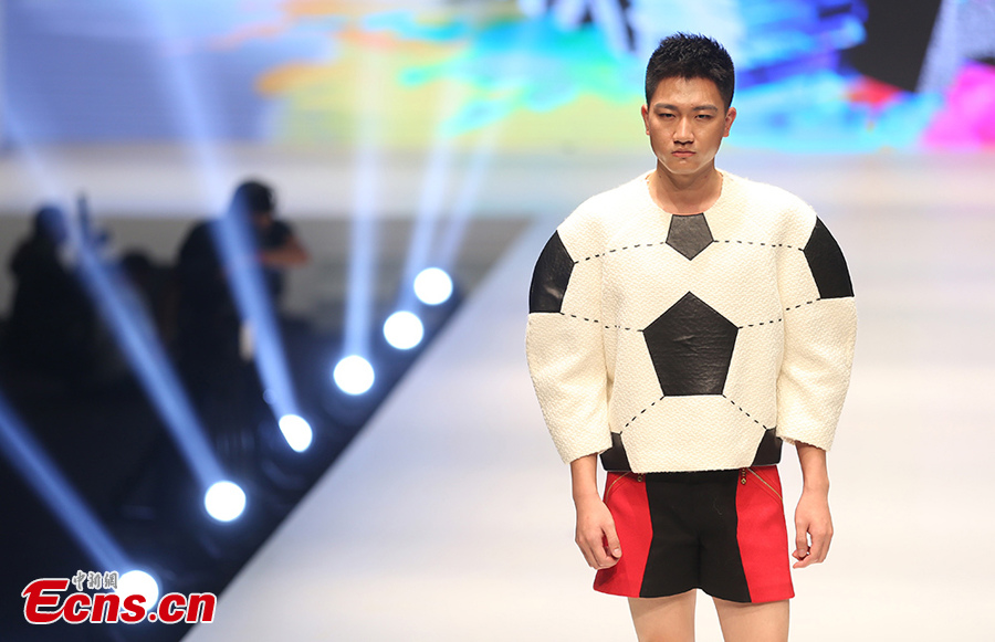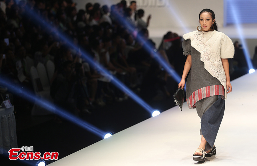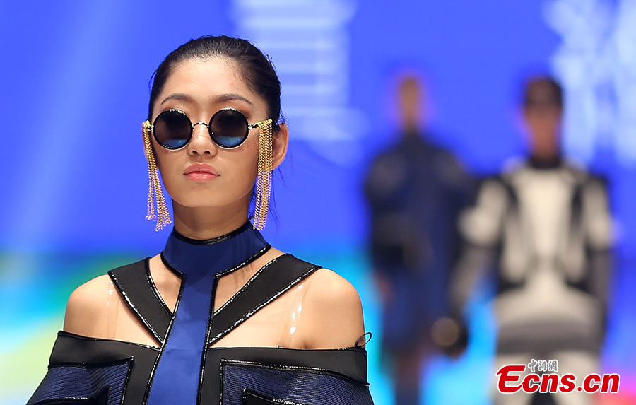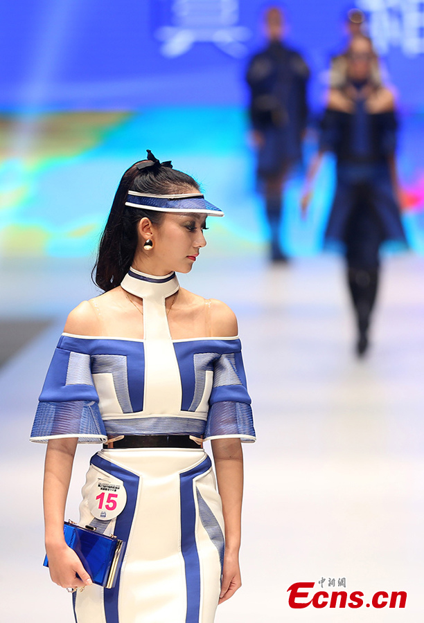 A model presents fashion creations during the 16th Jiangsu International Costume Fair in Nanjing, capital of East China's Jiangsu Province, Sept 12, 2014. The costume fair kicked off in the city on Friday. (Photo: China News Service/Yang Bo)
