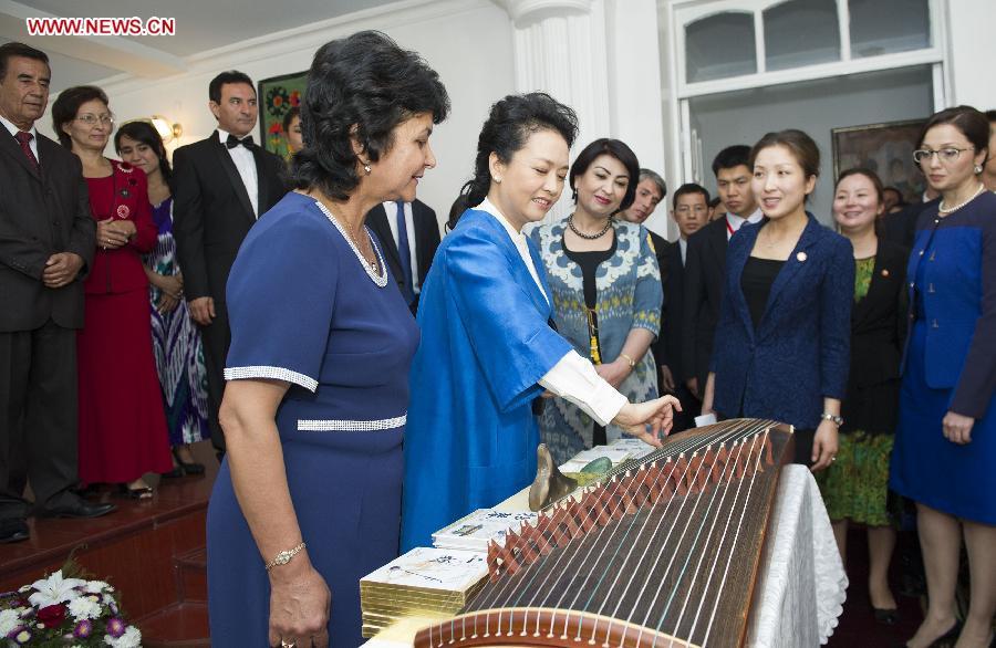 Peng Liyuan visits Tajikistan state college of music arts in Dushanbe (1/4)