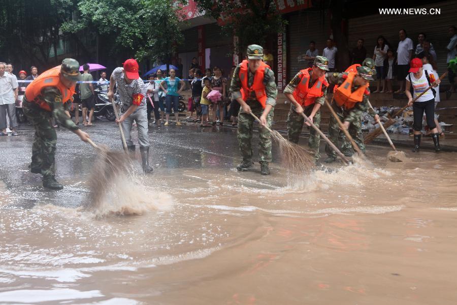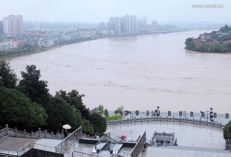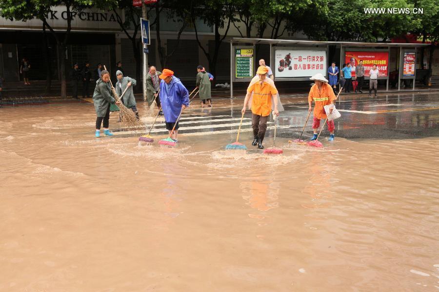 A road is flooded in the Guang'an District of Guang'an City, southwest China's Sichuan province, Sept 14, 2014. A persistent heavy rainfall since Saturday hit Guang'an, Bazhong and Dazhou and other cities, causing serious urban waterlogging, two people dead and 7 missing. (Xinhua/Liao Xiaobing)