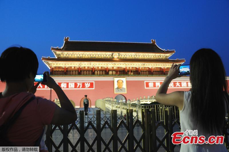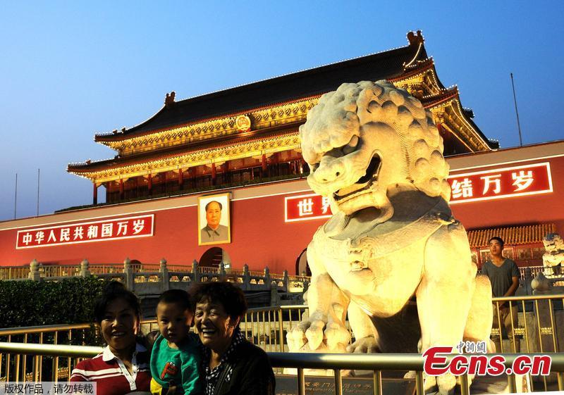 Tian'anmen Rostrum takes on new look to embrace National Day(1/3)