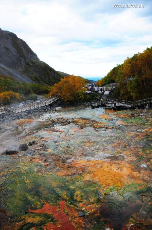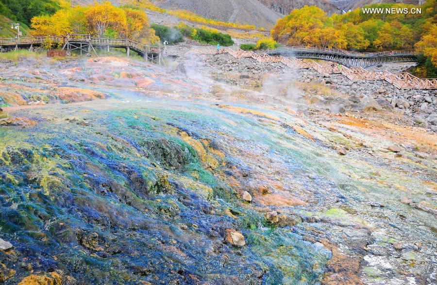Photo taken on Sept 13, 2014 shows the hot spring of Changbai Mountain in northeast China's Jilin province. Changbai Mountain Nature Reserve, established in 1960, was listed in the UNESCO's "Man and the Biosphere" program in 1980. Approved by the State Council in 1986, it became a state-level nature reserve. (Xinhua/Zhang Jian)