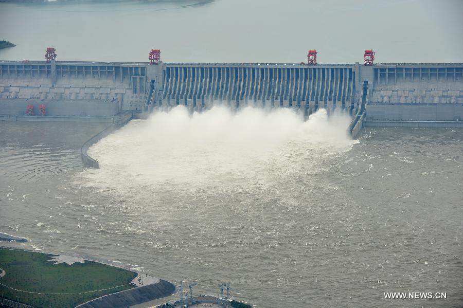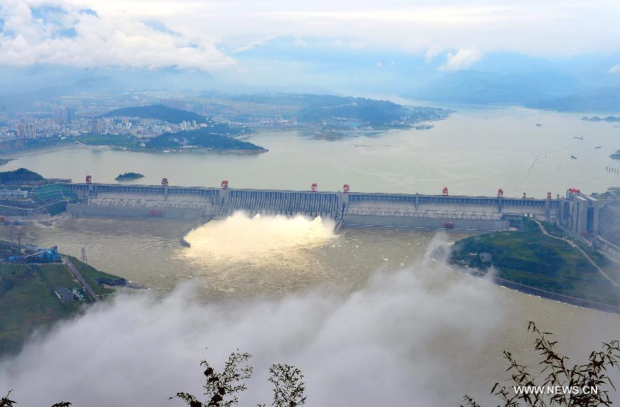 Photo taken on Sept 15, 2014 shows the Three Gorges Dam, a gigantic hydropower project on the Yangtze River, in Yichang City, central China's Hubei province. The dam started a new round of experimental impoundment on Monday morning, where the water level is expected to reach 175 meters by the end of October or November. (Xinhua/Zheng Jiayu)
