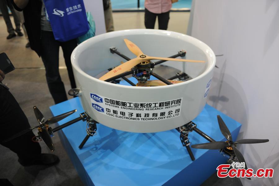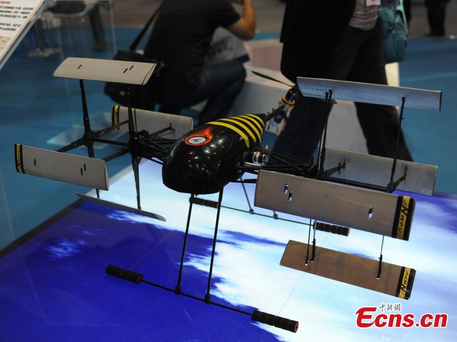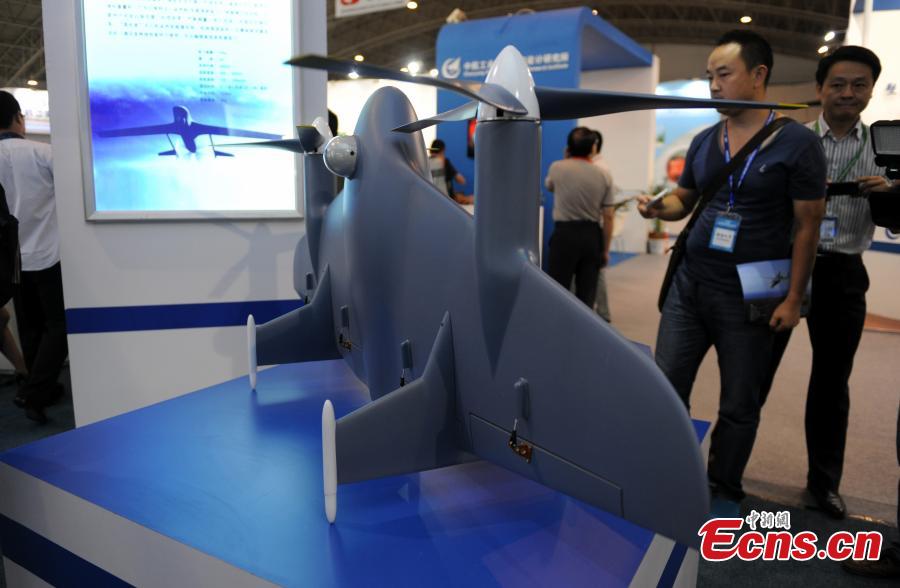 A vertical takeoff and landing unmanned aerial vehicle (VTOL UAV) is on display at the UAS China Conference & Exhibition 2014 in Beijing, capital of China on September 16, 2014. As one of China’s largest UAV conferences, the event features a full range of latest UAVs. The exhibition kicked off on September 15, and would last until September 18. [Photo: Chinanews.com/ Chen Haifeng]