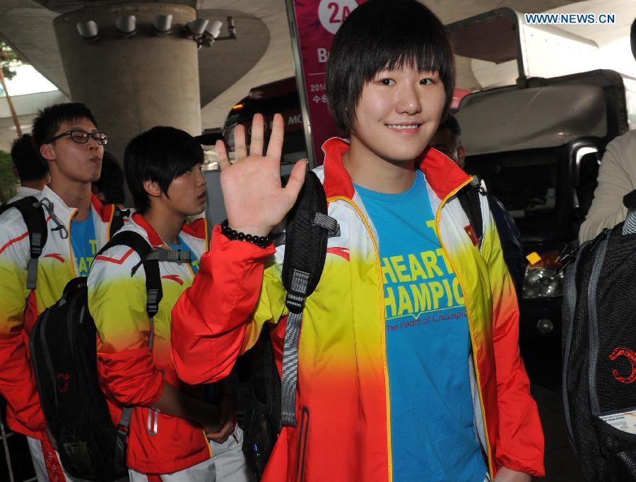 Chinese Sports Delegation arrives in Incheon for Asian Games(1/4)