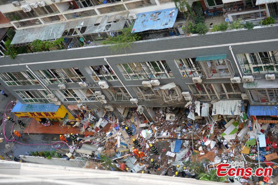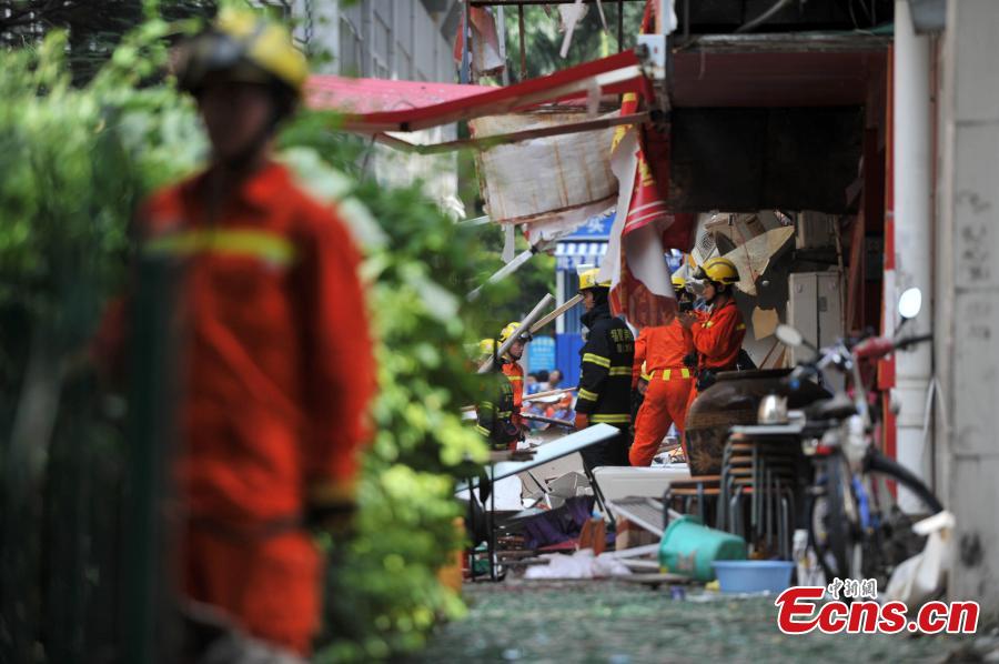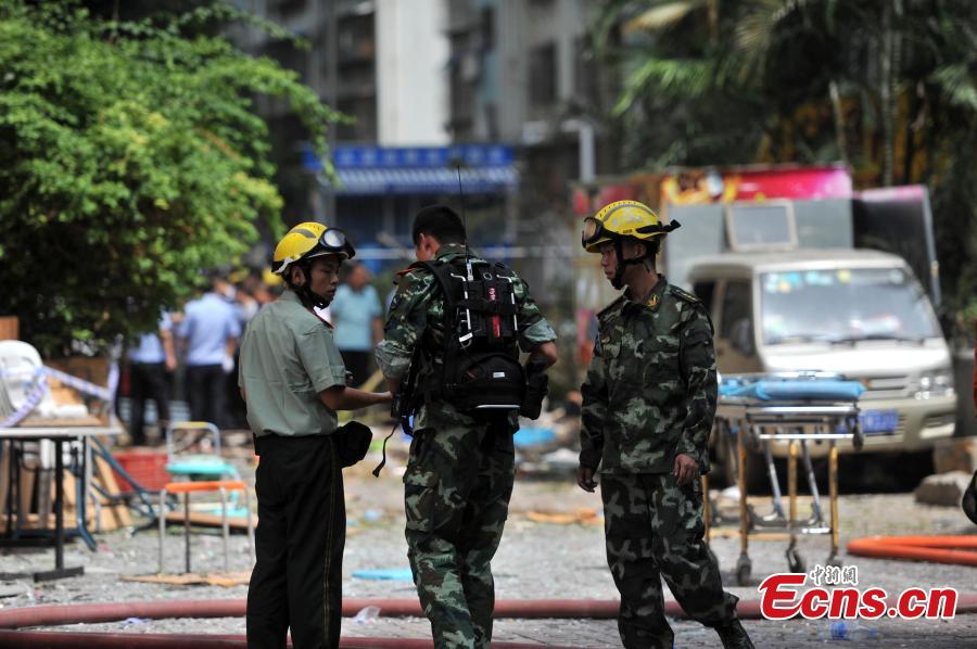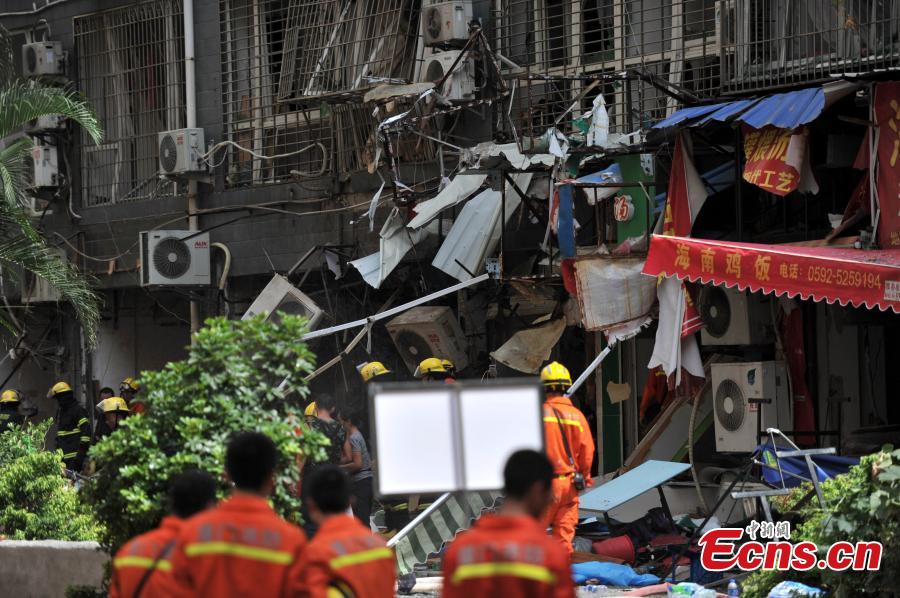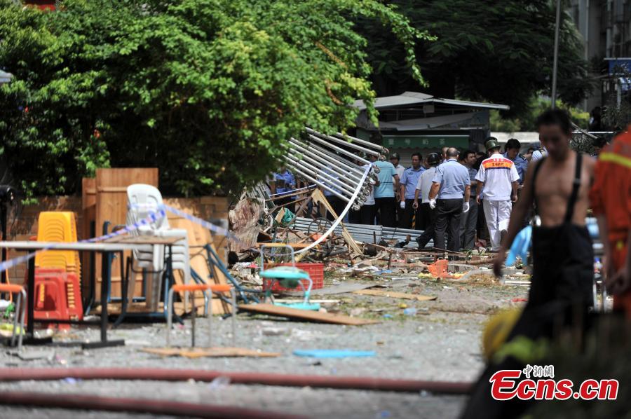 At least four people were killed in a restaurant gas explosion in Xiamen, East China's Fujian province on Friday, September 19, 2014. A total of 30 casualties have been reported including 4 deaths and 10 in critical condition. (Photo: China News Service/Lv Ming)