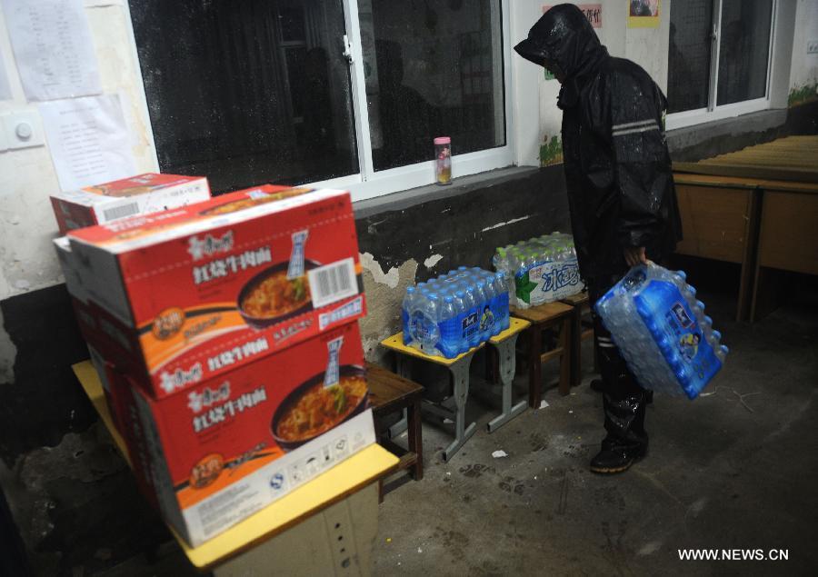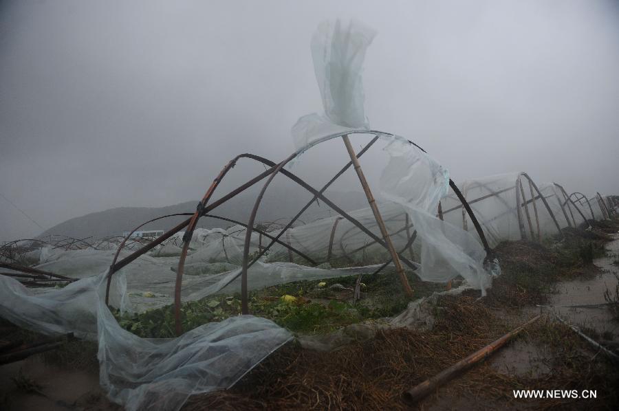 Cars run in rain storm at Shipu Township of Xiangshan County, east China's Zhejiang province, Sept 22, 2014. The 16th typhoon (tropical storm level) this year made the 4th landfall in Hepu Township of Xiangshan County in Zhejiang province at 7:35 pm on Monday. (Xinhua/Han Chuanhao)