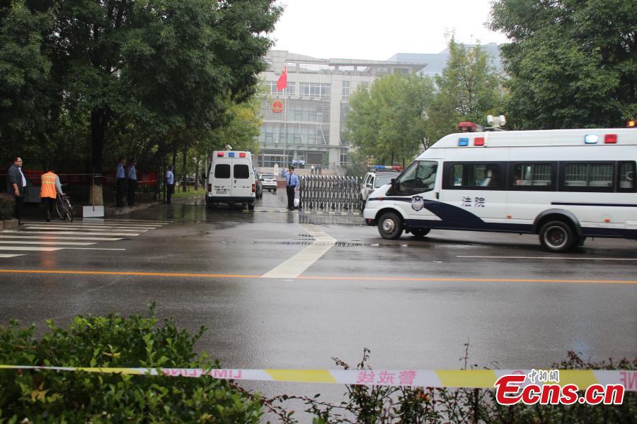 Cars enter the Langfang Intermediate People's Court before the trial of a former senior Chinese economic planning official accused of taking bribes opens in Hebei Province on Wednesday, September 24, 2014. (Photo: China News Service/Song Mintao)