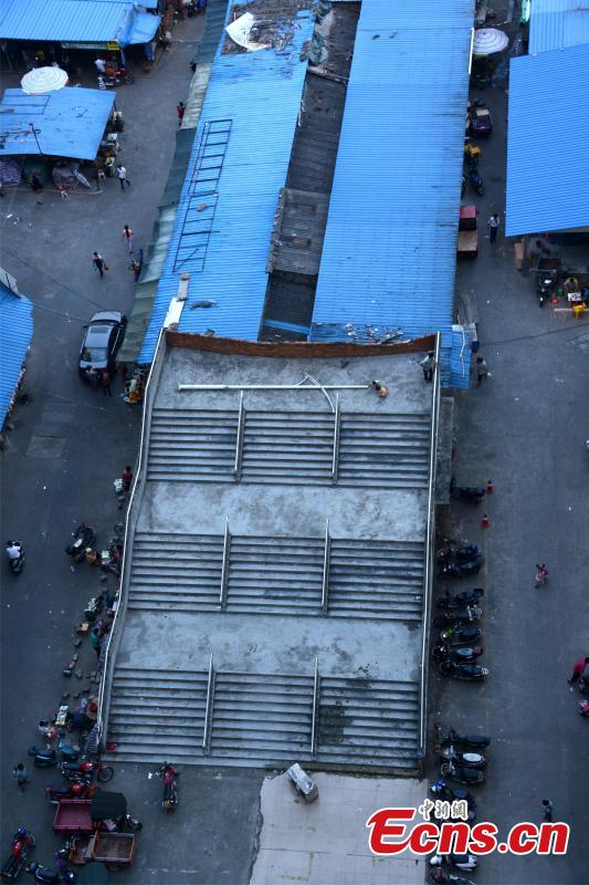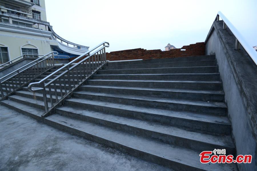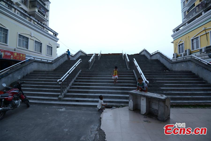 Children play on an unfinished overpass in Qinzhou, South China's Guangxi Zhuang Autonomous Region on Tuesday, September 23, 2014. The structure where construction work was abandoned obstructed pedestrian traffic, and brought inconvenience to local residents. [Photo: China News Service/ Ren Feng]