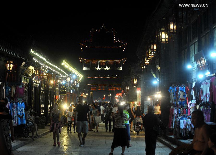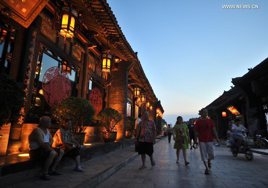 Tourists visit Pingyao Ancient Town, Pingyao County, north China's Shanxi province, Sept 19, 2014. Located in Jinzhong Basin of Shanxi province, the 2700-year-old Pingyao Ancient Town is one of the most well-preserved ancient towns in China. Pingyao, which was added to the World Heritage List by UNESCO in 1997, attracts numerous tourists from all over the world. (Xinhua/Yan Yan)