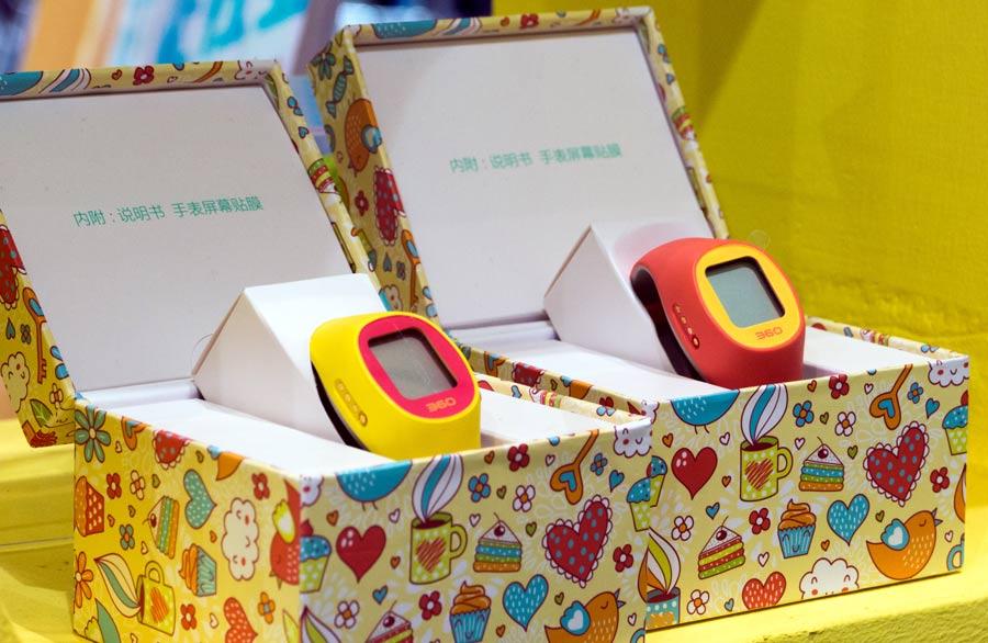 Two "360 kids' safety watches"are displayed at the exhibition area of the 2014 China Internet Security Conference (ISC 2014) on Sept 25, 2014 in Beijing. The watch is a wearable device that helps parents locate their children via GPS and Bluetooth technology. Parents can monitor the location of their kids by installing an application on their smart phones. The children can also send SOS signals to their parents whenever they feel they are in danger. [Hao Yan/chinadaily.com.cn]