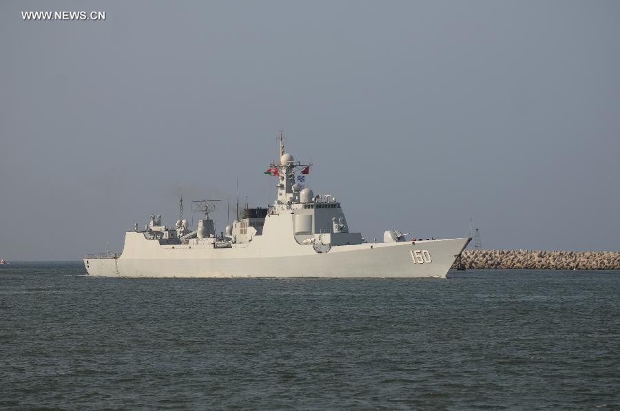 Changchun destroyer of the 17th Chinese escort naval fleet arrives at Karachi port in southern Pakistani port city of Karachi on Sept 27, 2014. The 17th Chinese escort naval fleet sent by the Chinese People's Liberation Army (PLA) Navy arrived in Karachi on Saturday for a five-day visit. (Xinhua/Ahmad Kamal)