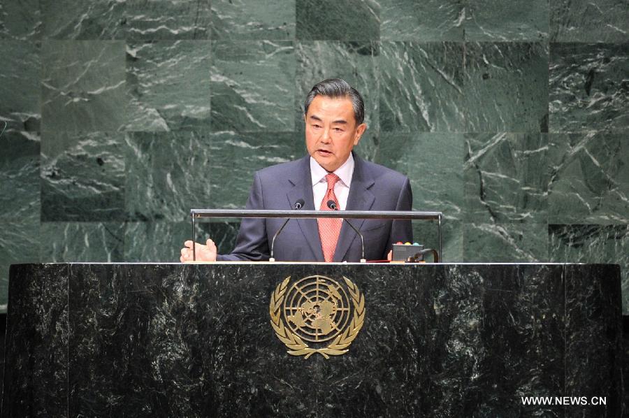 Chinese Foreign Minister Wang Yi speaks during the general debate of the 69th session of the United Nations General Assembly, at the UN headquarters in New York, on Sept 27, 2014. (Xinhua/Niu Xiaolei)