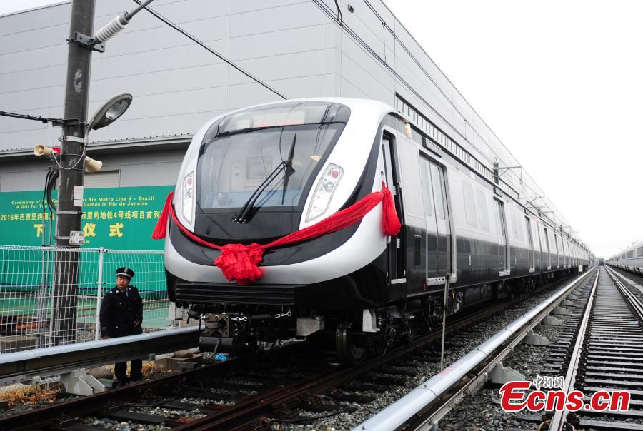 Subway train made for 2016 Olympic Games rolls off production line (1/3)