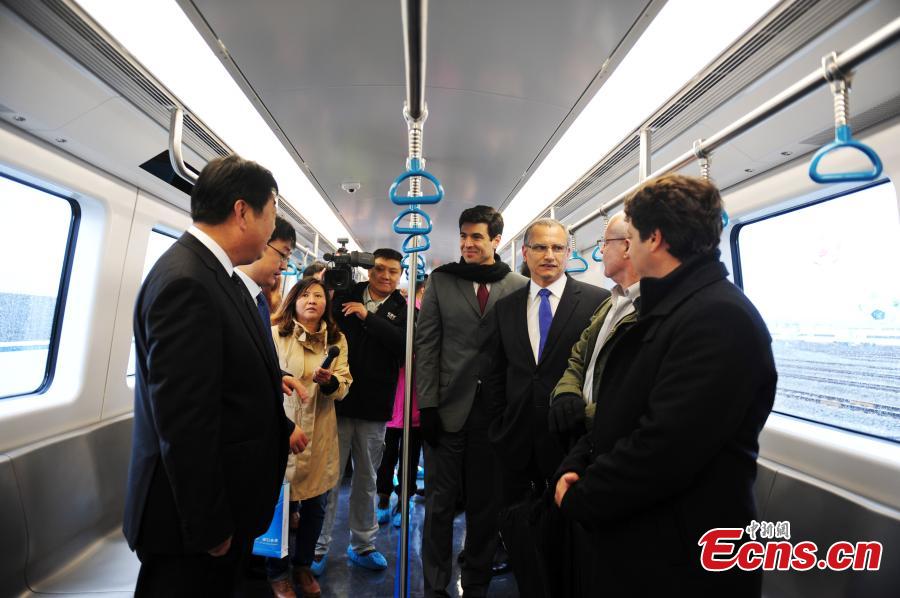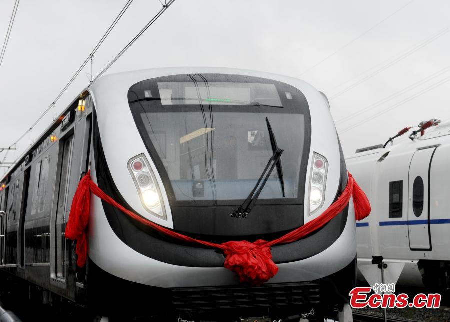 The first subway train produced for the 2016 Olympic Games in Brazil rolls off the production line in Changchun, Jilin province on Monday, September 29, 2014. Produced by the CNR Changchun Railway Vehicles Co., Ltd., the train can travel at up to 100 kilometers per hour. [Photo: China News Service/ Zhang Yao]