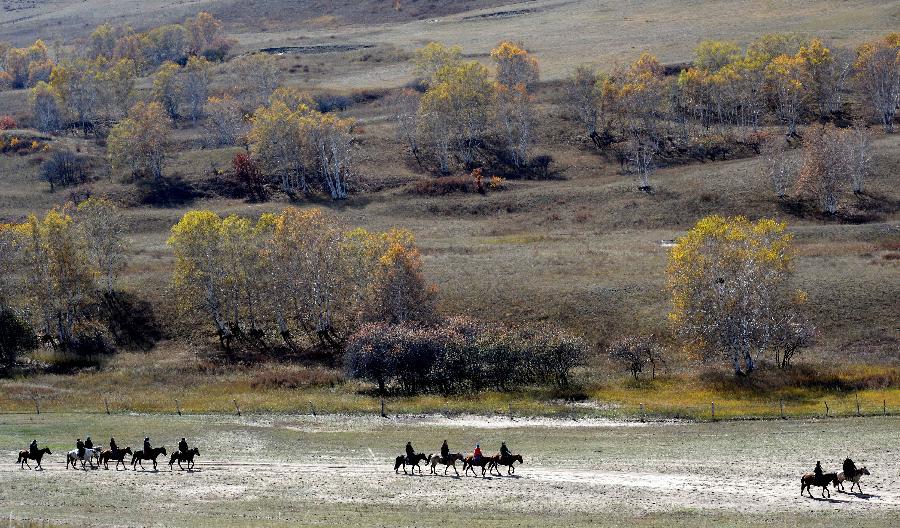 Autumn scenery on grassland in N China's Inner Mongolia (1/4)