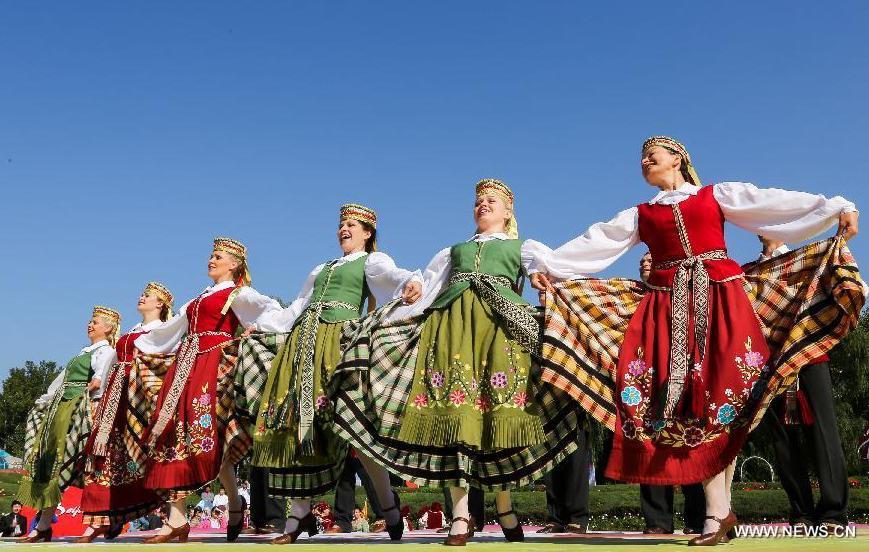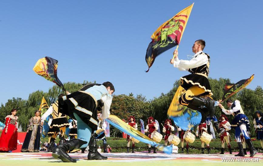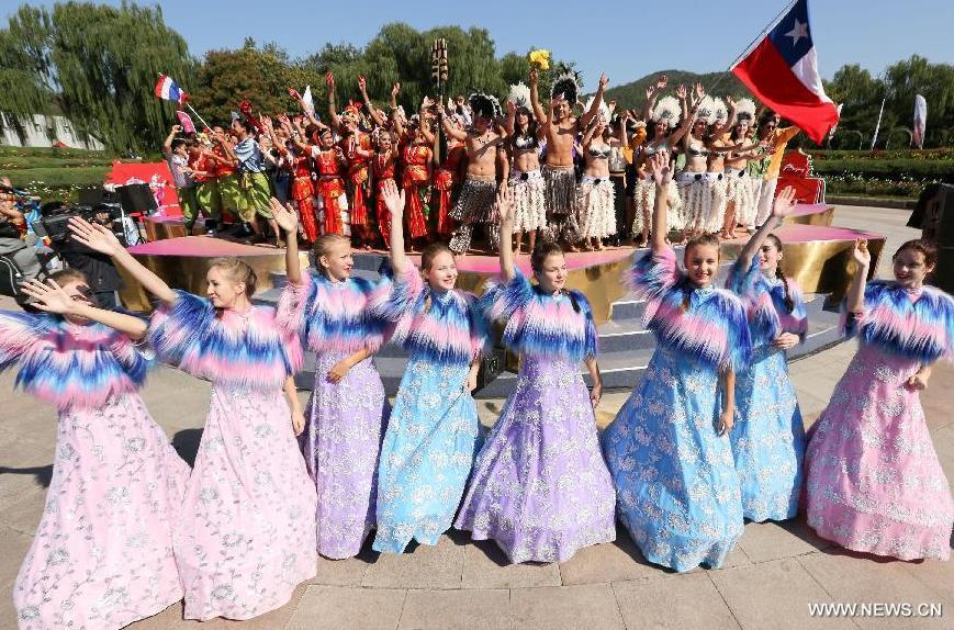 Performers dance during the closing ceremony of the 16th Beijing International Tourism Festival in Beijing, capital of China, Oct. 6, 2014. The week-long festival closed on Monday. (Xinhua/Zhang Yu)
