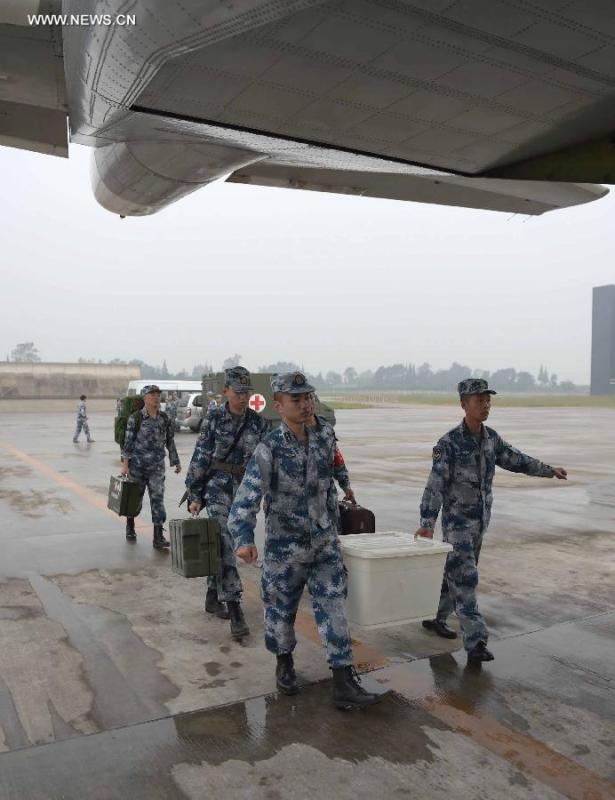 Medical staff and supplies from Chengdu Air Force arrive in quake-hit region(1/5)