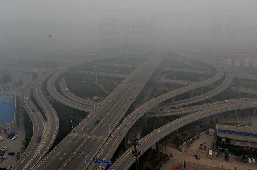 Buildings are shrouded in smog in Shenyang, capital of northeast China's Liaoning province, Oct 9, 2014. (Xinhua/Yao Jianfeng)