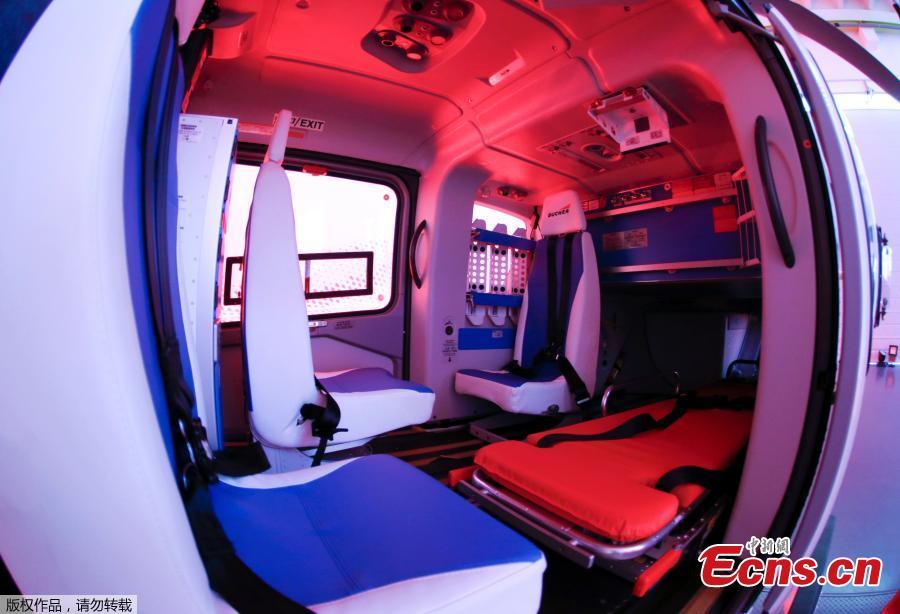 A twin-engine EC135 Airbus helicopter stands in a hangar prior to the official handover ceremony to China in Donauwoerth, Southern Germany, October 9, 2014. [Photo/Agencies]