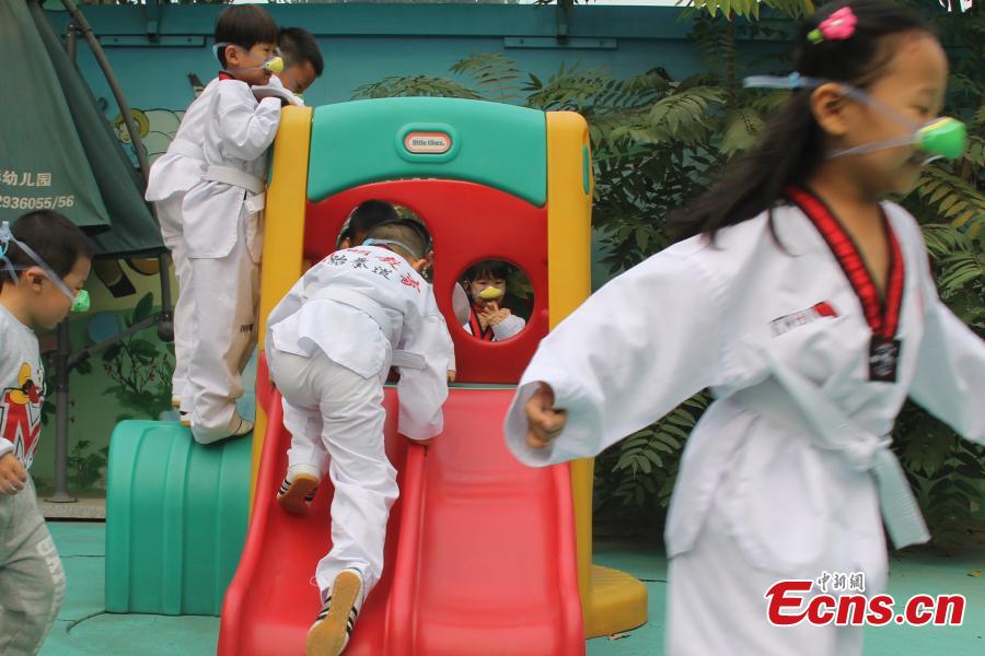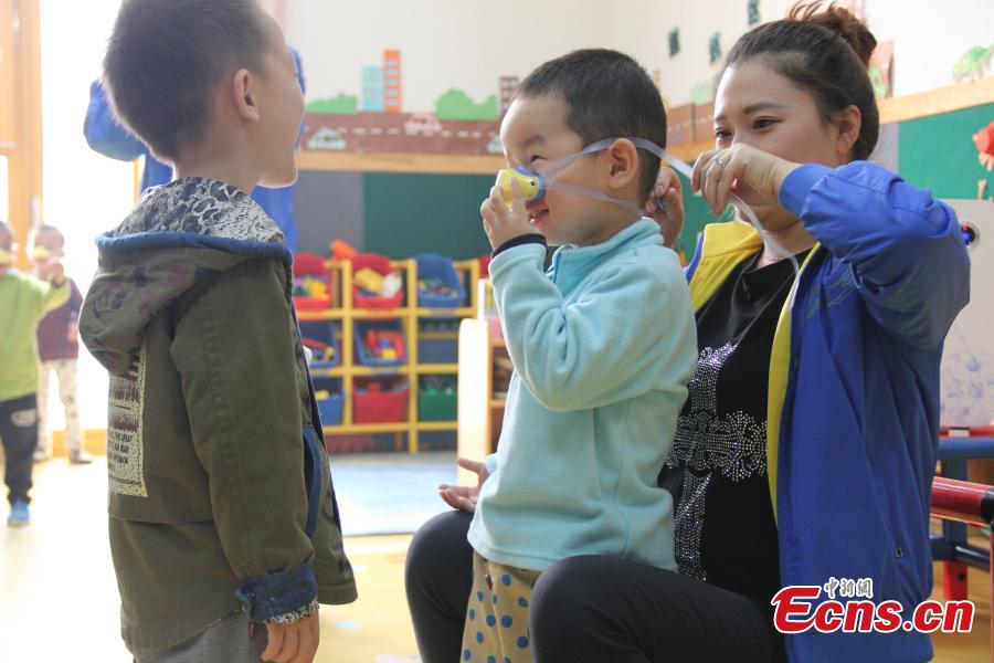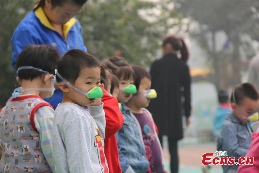 Kindergarten protects children with anti-smog nose masks(1/3)