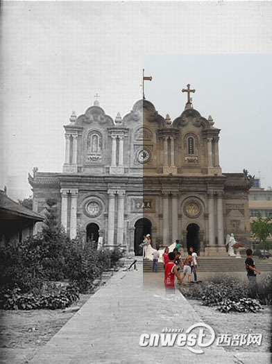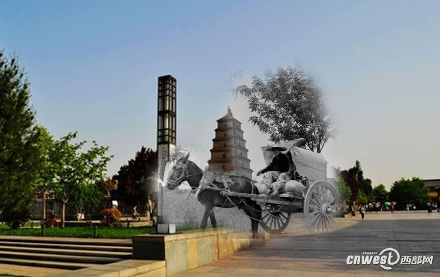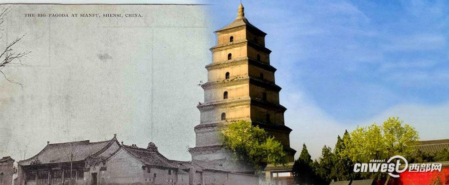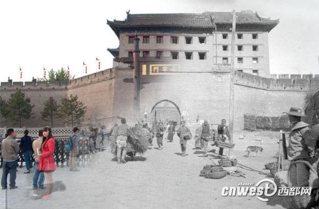 Bell Tower at present and in the past. The Bell Tower in Xi'an was built in 1384 during the early Ming Dynasty. Located at the center of the city, it is a symbol of Xi'an and one of the grandest of its kind in China. (Cnwest/Li Gaofeng)