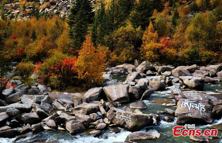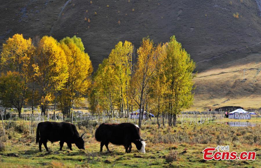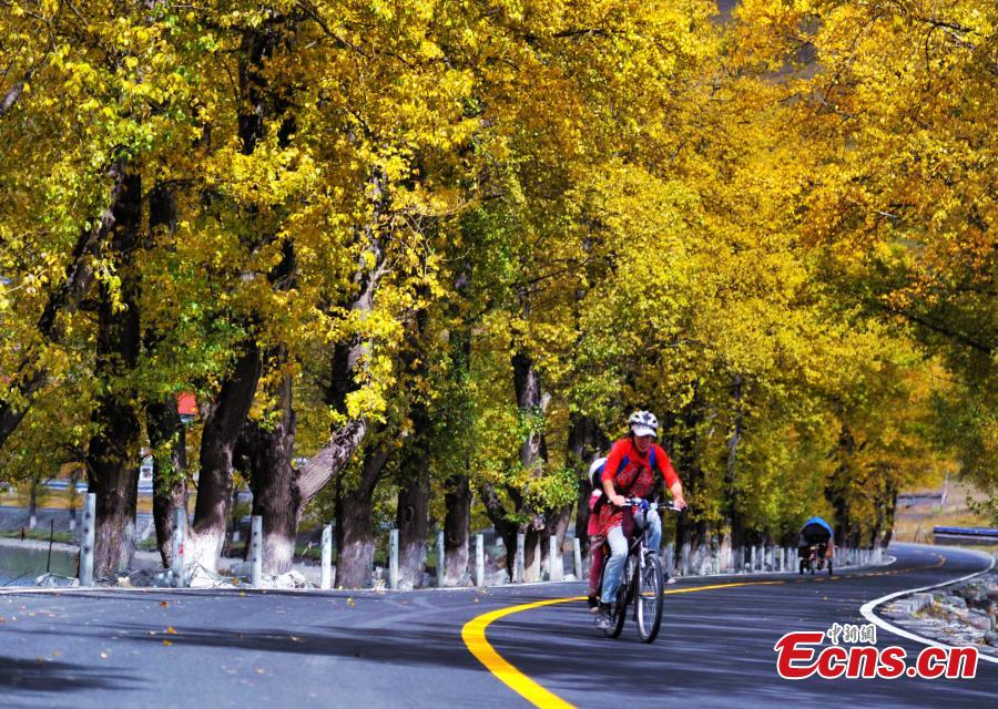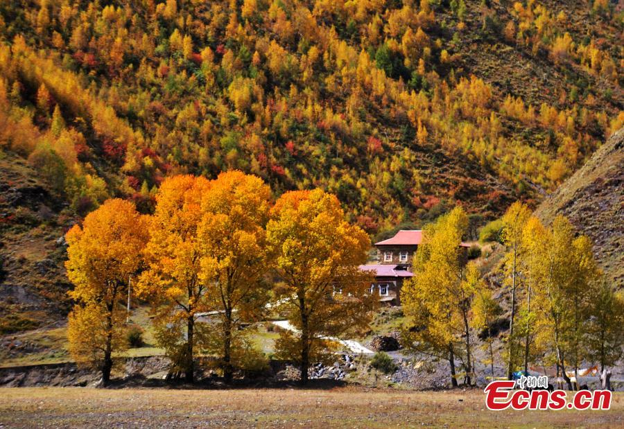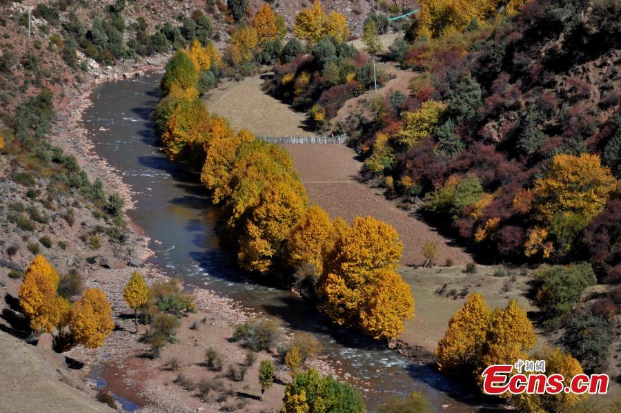 Photo taken on October 15 shows enchanting scenery alongside the Sichuan-Tibet Highway. Autumn is the best season to enjoy sight along with the route. [Photo: China News Service/Liu Zhongjun]